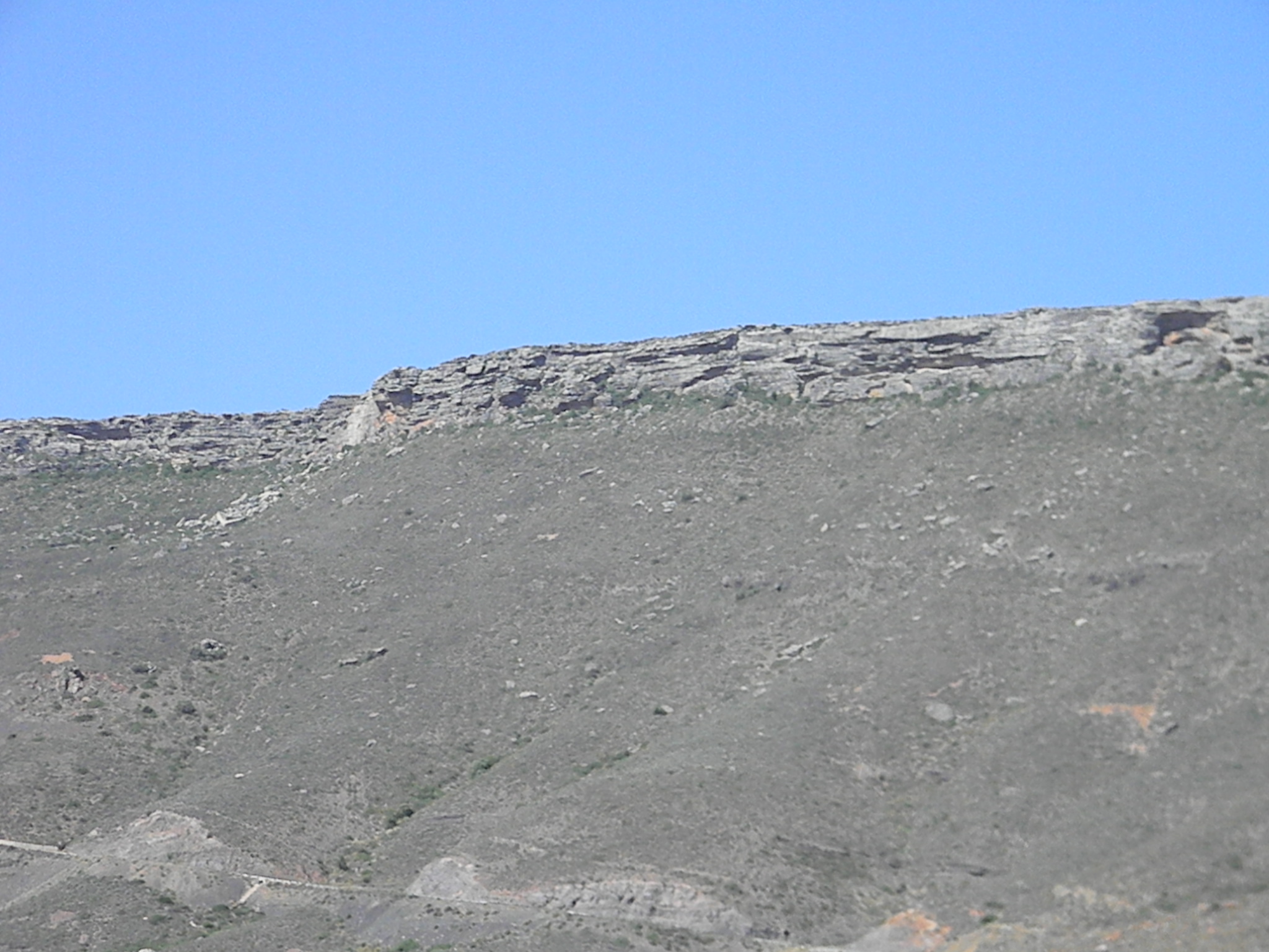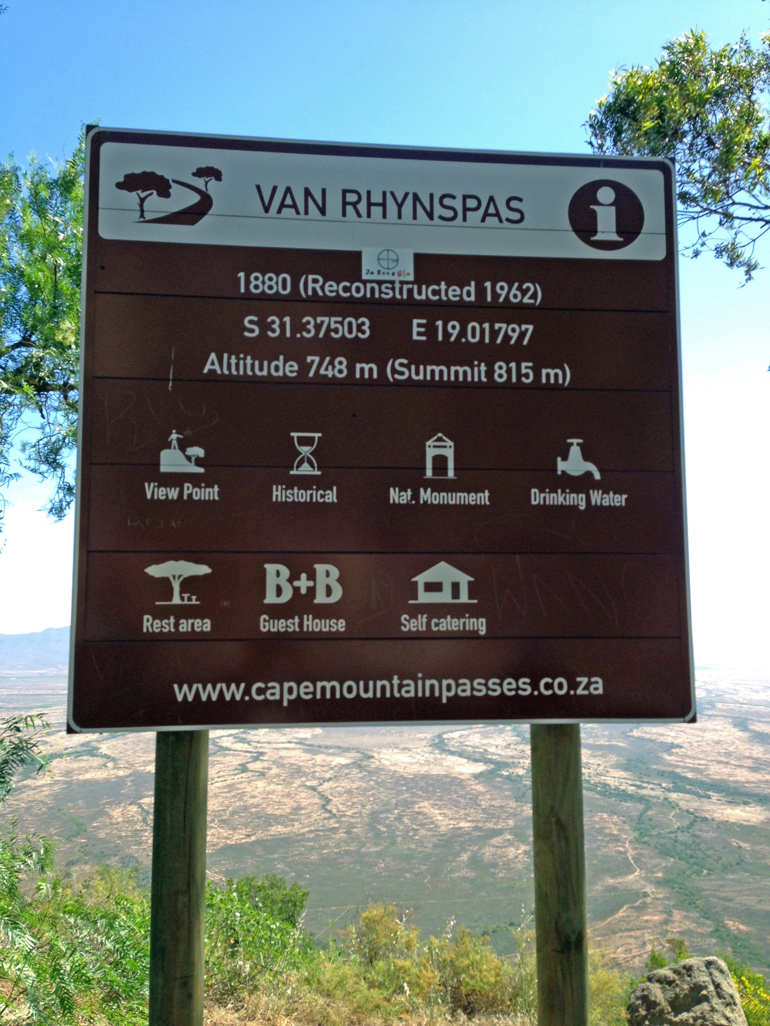 We went up and over a mountain that looked like it had “rock’ icing on it …. a flat – topped mountain with a thin layer of a different kind of rock on top. Stopped at the top of the pass at a viewpoint, the Van Rhynspas, to take pictures and enjoy the view.