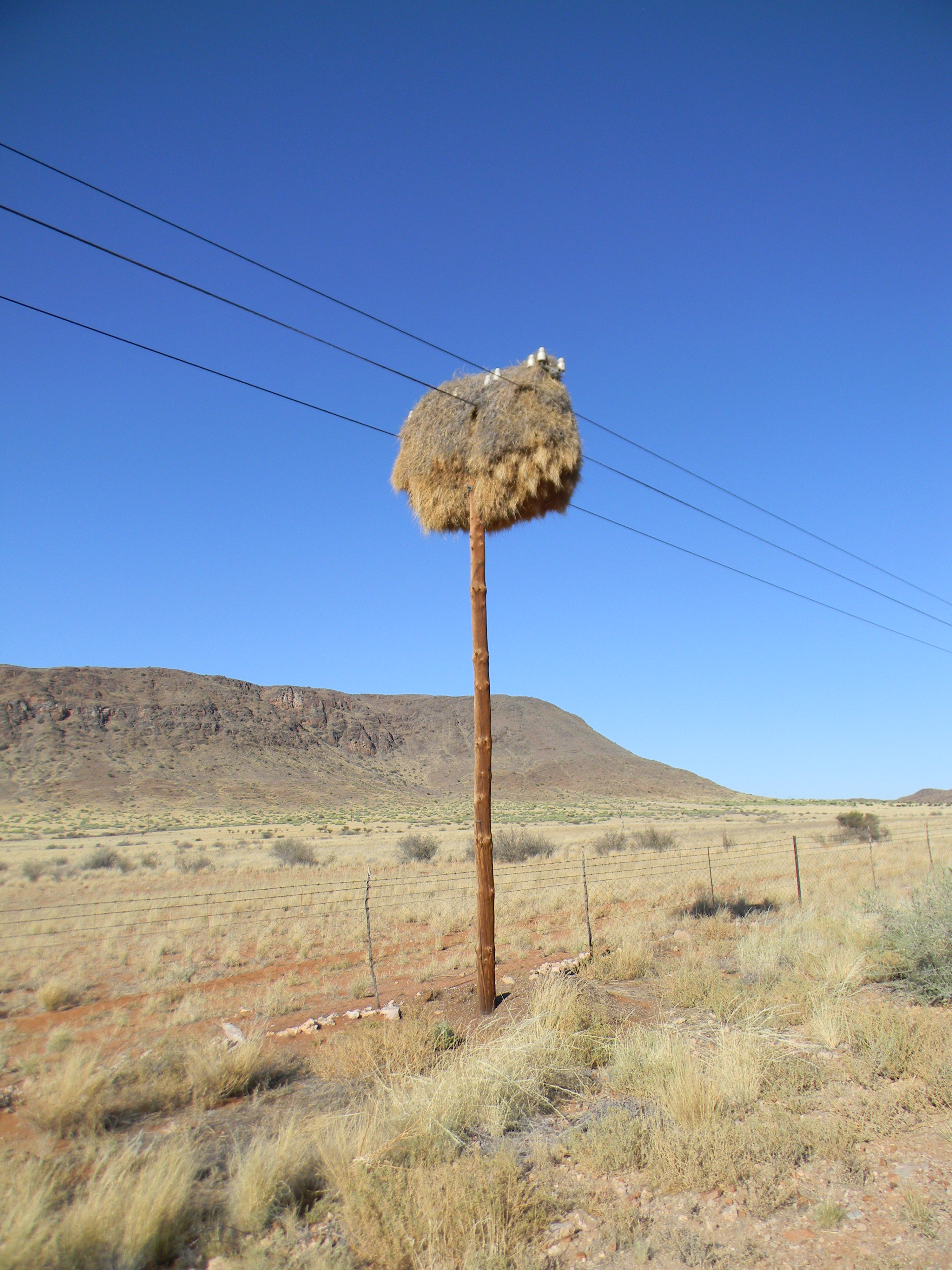 It was at this point that we started to see sociable weaver bird nests, looking like mini-haystacks hanging off the power poles.