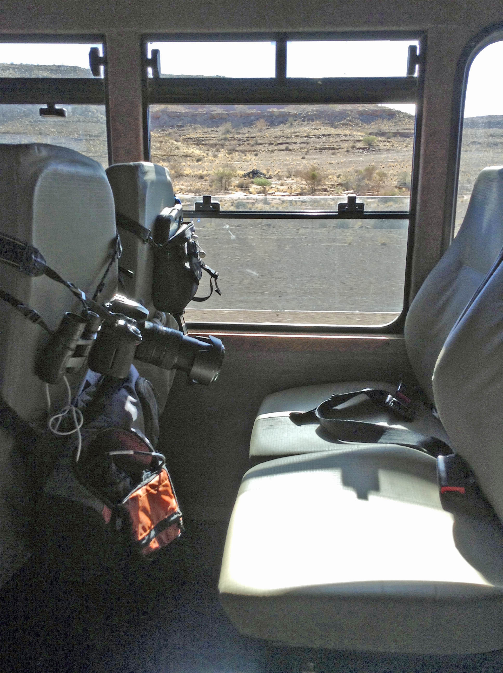 After made a short comfort stop in the town of Calvinia, in the middle of a great wool producing area originally started by the Afrikaners, we continued on, driving across the ‘Little Karoo’ which I think, became the ‘Big Karoo’ when we crossed the Orange River. We spotted a few animals along the way: springbok first, then camels followed by a giraffe way off in the distance. There were lots and lots of sheep and goats too, as promised. The terrain was identical to Wyoming’s …. undulating miles and miles of sagebrush …. or at least, the African equivalent. During this part of the trip, Mike kept saying, “We could be driving through Wyoming!” Eventually, the endless sagebrush gave way to endless grasslands.