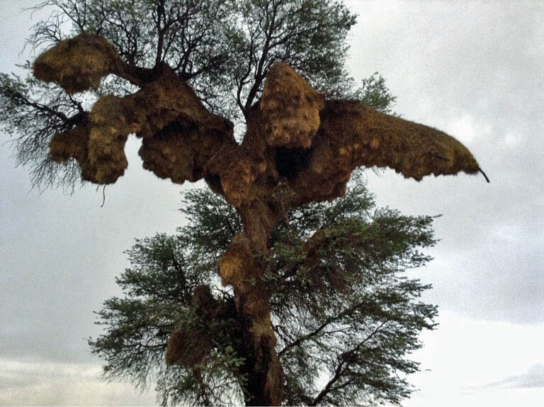 Our first sighting of the day was a Leopard Tortoise. Richard explained to us that the bushmen in the Kalahari use it for survival in the desert, poor things. We saw many more Sociable Weaver nests.