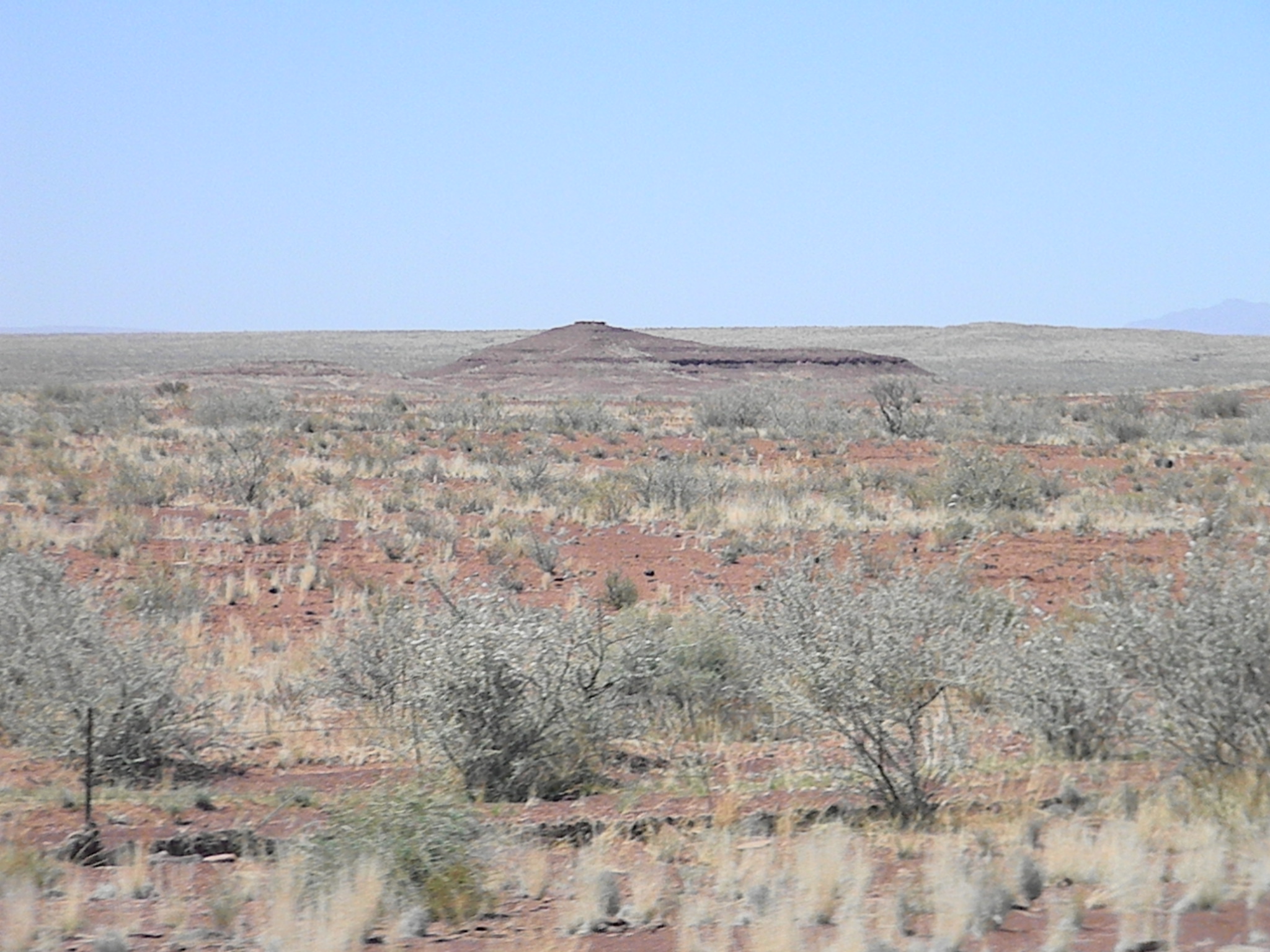 We were on our way to Namibia – this is what the terrain looked like; flat plains, areas of rough and tumble rocks and in the distance, red dunes, making me anticipate we would soon be seeing the red dunes of the Namib Desert but it turned out to be a false alarm. We had a lot farther to go before we would see them!