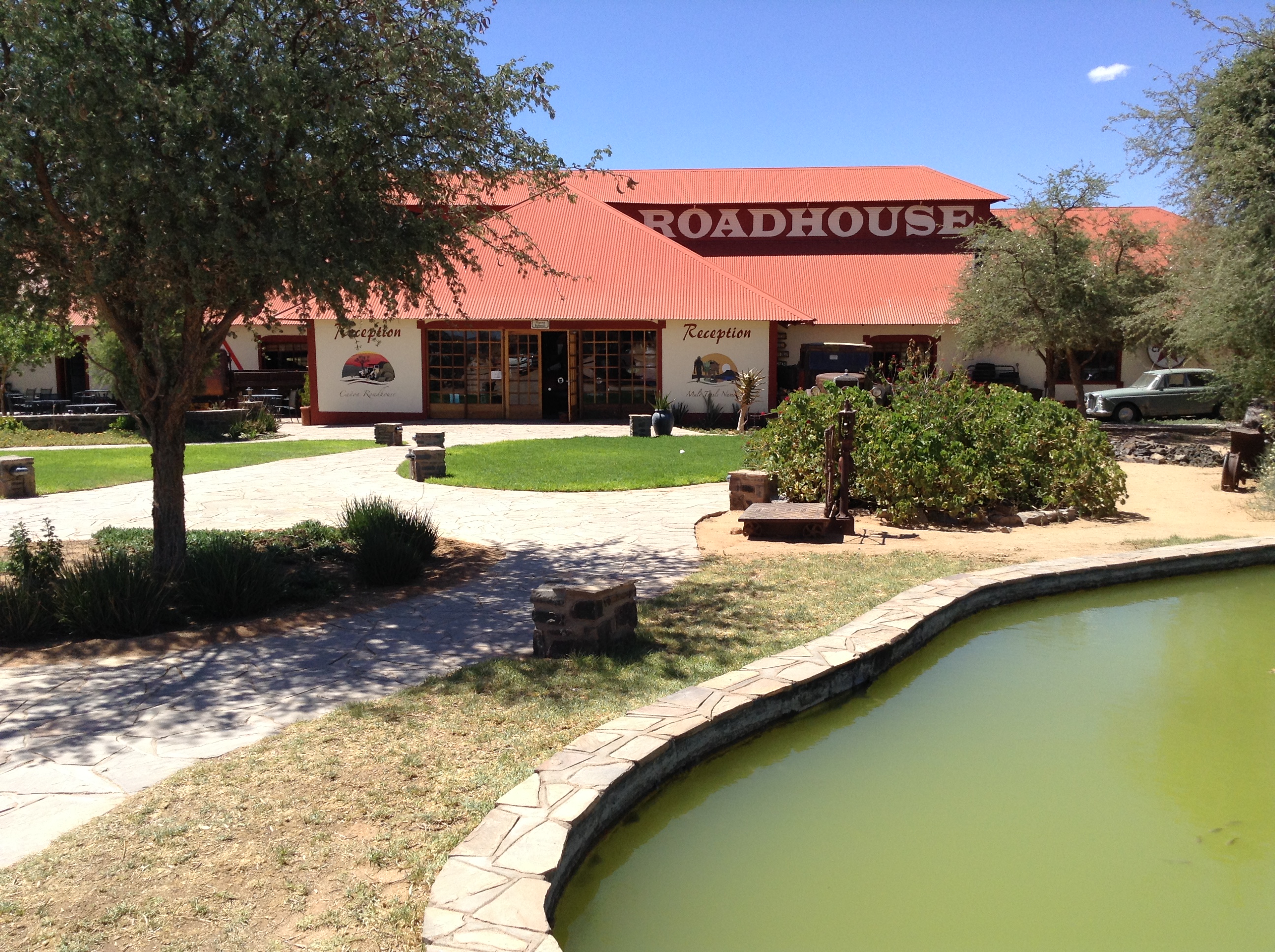 When we arrived at the roadhouse, we discovered a museum-like atmosphere created by antique cars in the garden and a museum of sorts inside. Of particular interest to Mike was this old vehicle with a quiver tree growing out of it’s engine. Along the way we had been introduced to quiver trees – the tree the bushmen used in the past to make quivers for holding their arrows. They are beautiful trees – they reminded me a bit of the Joshua trees in Southern California.