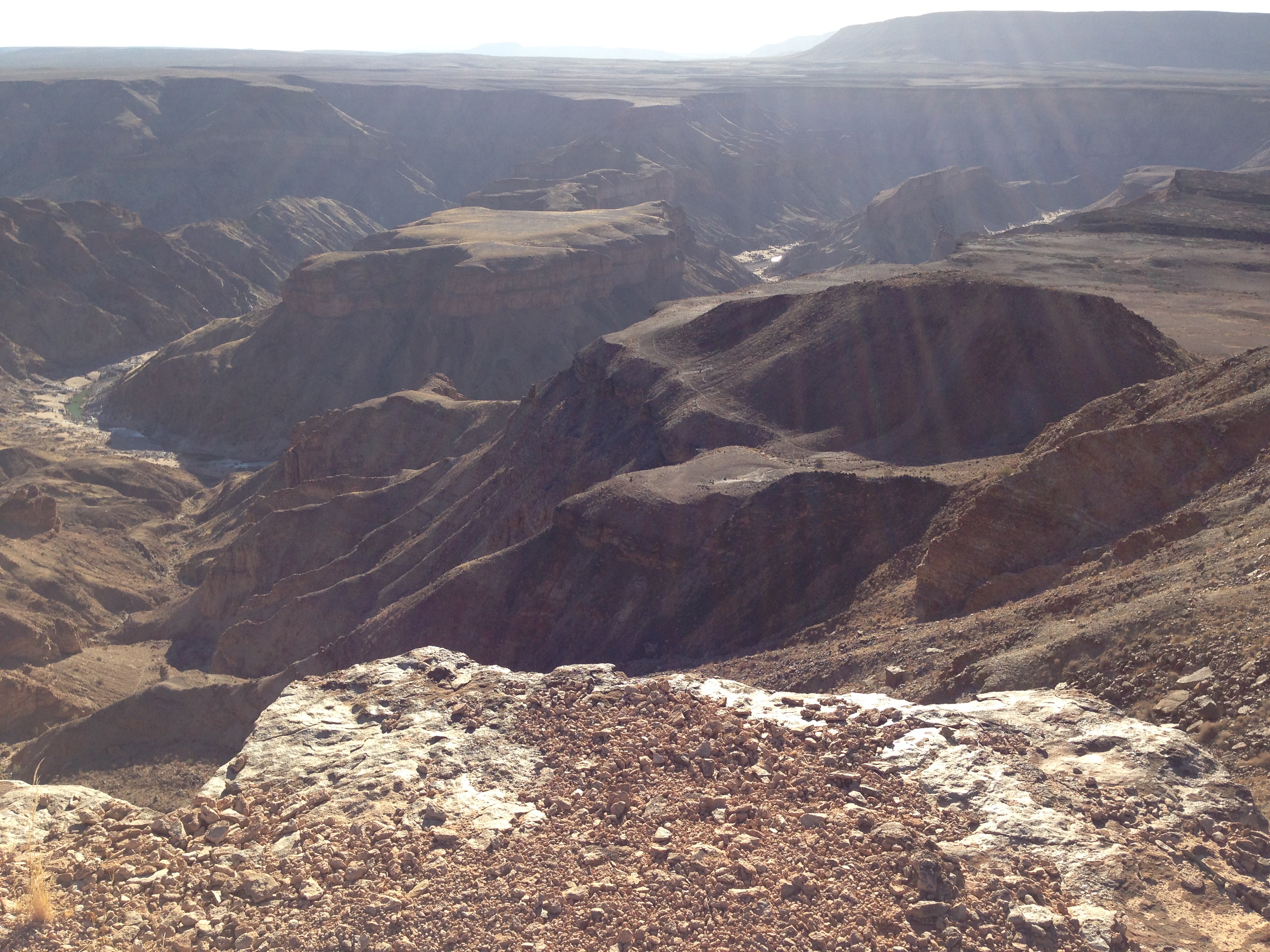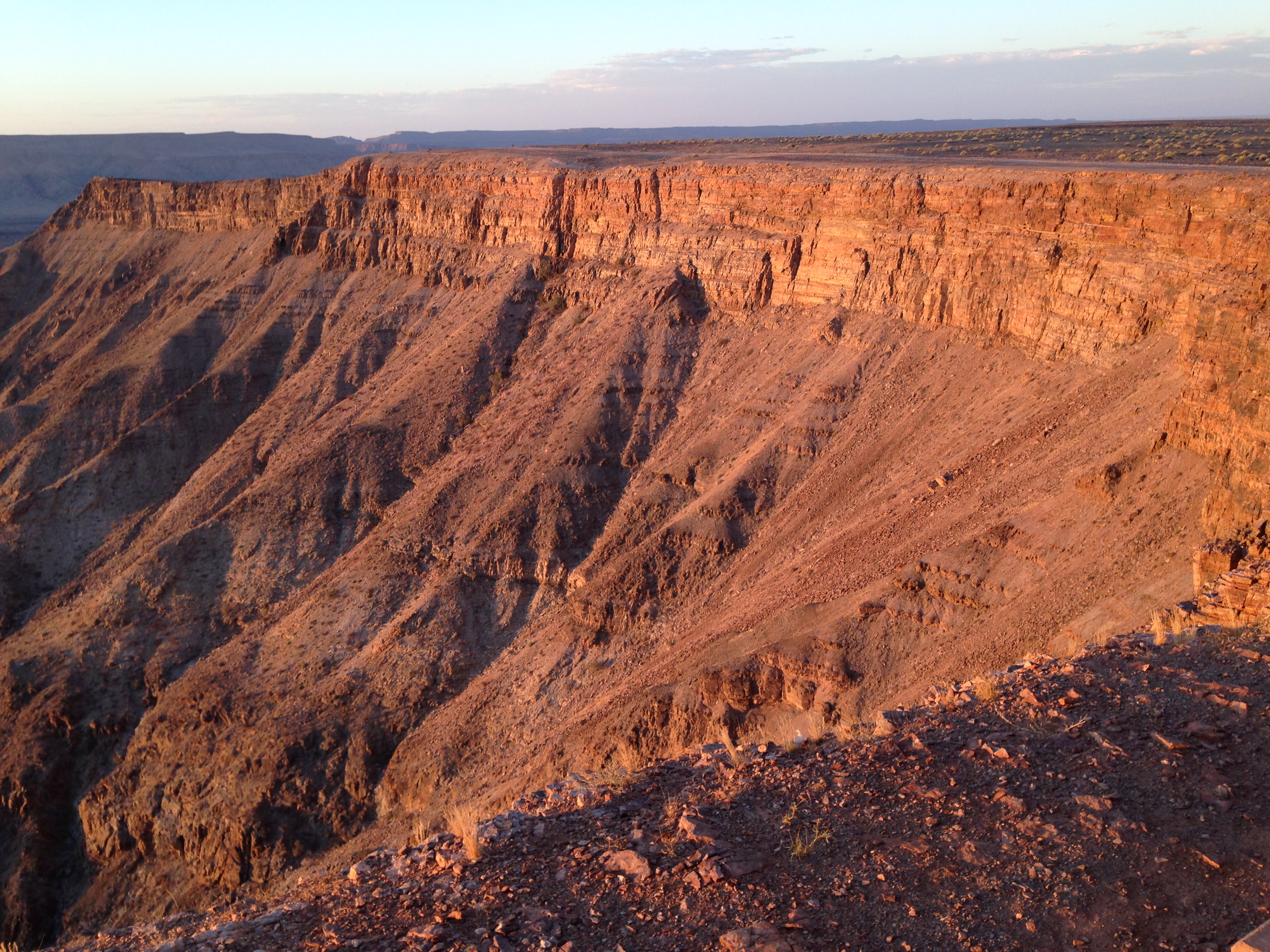 After a bit of a rest, we set off for Fish River Canyon, about 30 km away, to take in the sunset. Dumi dropped us at the head of a well travelled hiking trail through the canyon. This trail is a five day hike which leads down to the floor of the canyon, continuing on along the river. We obviously didn’t do this hike, skirting instead the canyon’s edge back to the main lookout. It was indeed beautiful.