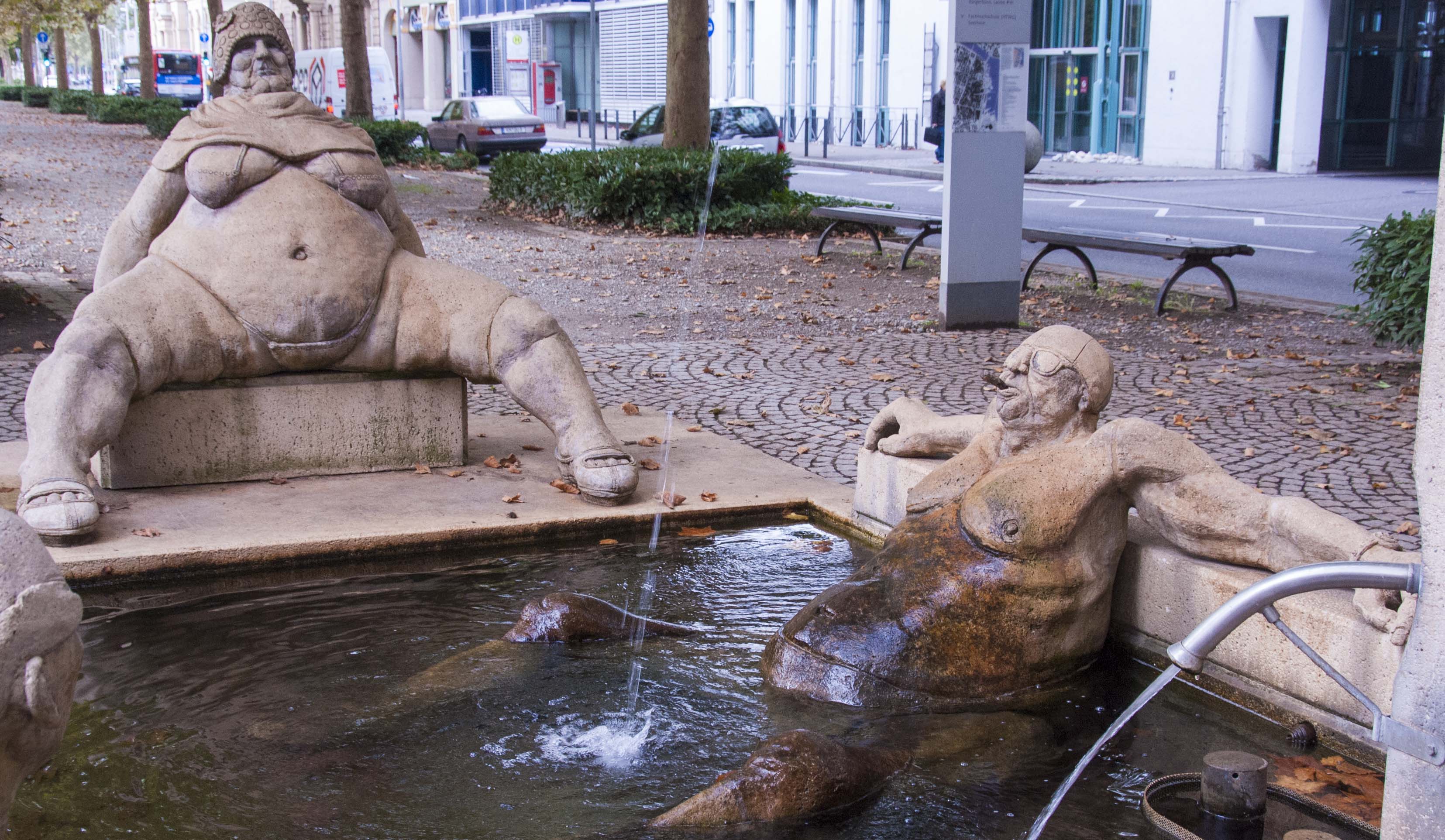 Our mission back to Konstanz had to be delayed for a while. A 0900 Mass was being celebrated. Being a tourist wandering the Kathedral while the congregation was trying to worship would be crass. So I suggested we revisit and photograph a unique water feature/ sculpture/ fountain thingie we had passed by the previous evening, then visit one of the three outdoor sports stores in the area. I didn’t recall why, but it seemed a good way to kill the time until Mass was over.