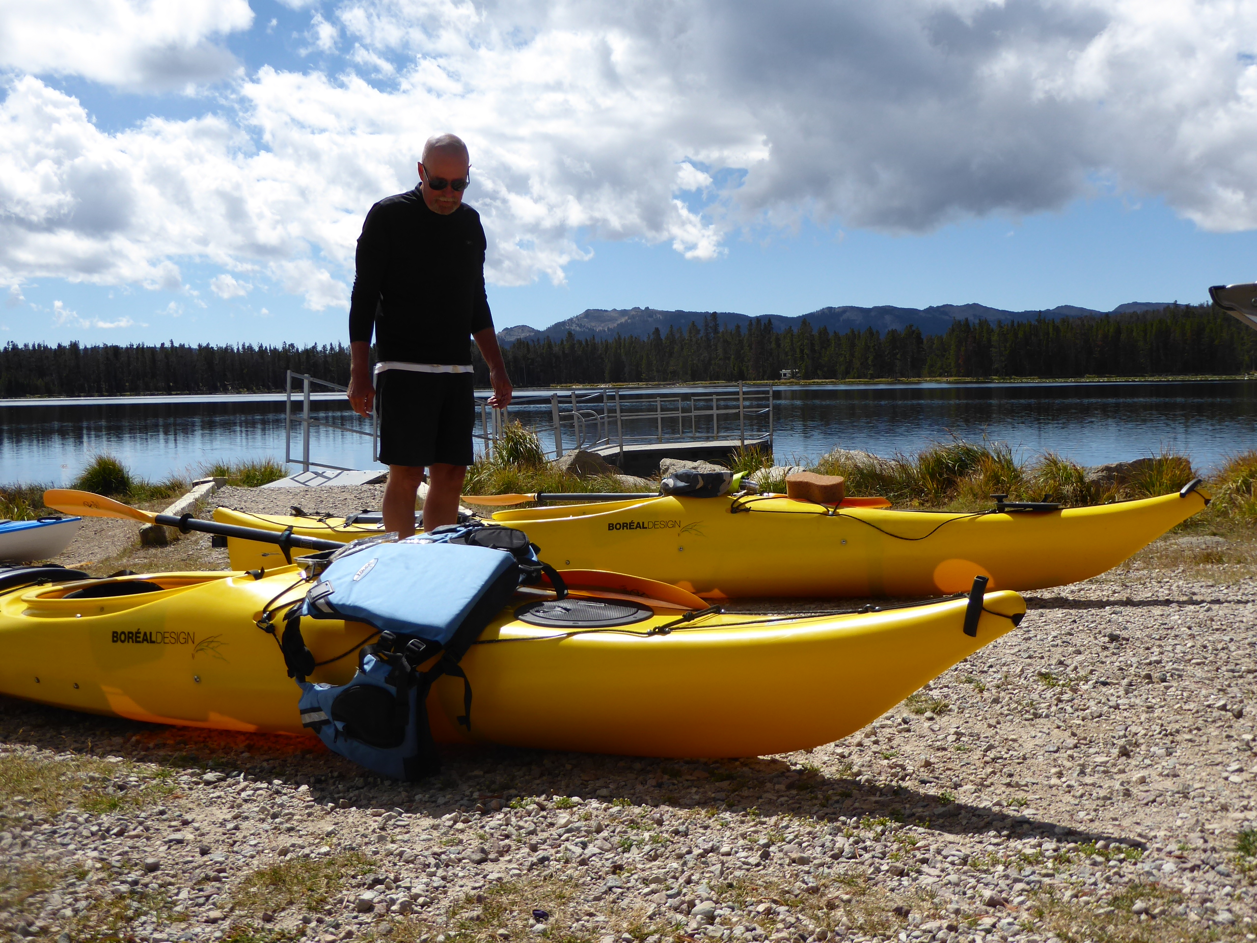 Today’s expedition was to Louis Lake but when we got there, the wind was up and the temperature was only 45 degrees F (7.2 degrees C for our fellow Canadians). We were at 9,400 feet (2865 meters) altitude. It was FREEZING!!!! Well, almost. For tough Wyomingites, it was fall as usual in the Rockies and, as long as a lake isn’t frozen over, a paddle is in order. We continued to Fiddlers Lake and sat, facing the lake, watching the wind blow, the sun peaking in and out of the clouds, munching peas & carrots, raw nuts, GMO free corn chips and Michael’s homemade salsa. Even if we couldn’t paddle, life was good. But then…..two more stalwart folks showed up with their kayaks, off-loaded and prepared to launch. Oops, no….first they sat to eat their lunch, waiting to see if we were going to call their bluff. We did. We off-loaded, they launched and we shortly after.