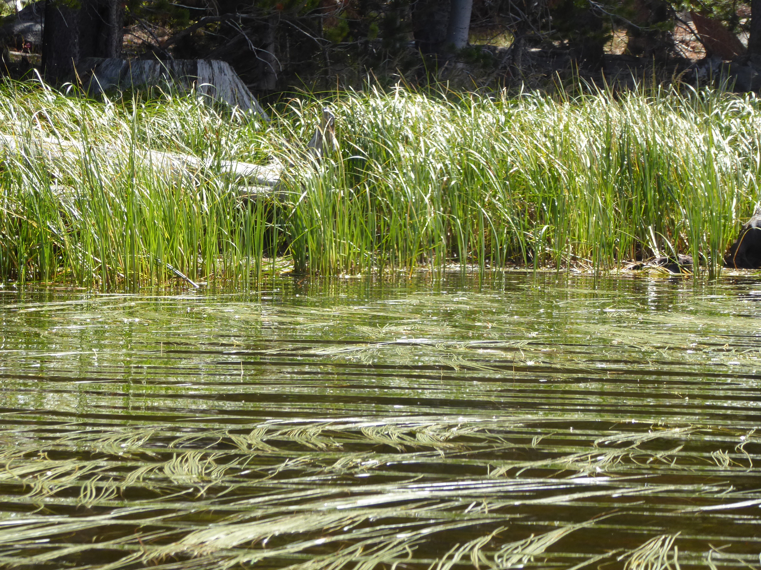 It was a normal day in Wyoming….SPECTACULAR! We set off going counter-clockwise around the lake. Our first visual treat appeared as we glided through masses of lake grasses which threw off the most astonishing abstract patterns with the sun glinting off their surfaces.