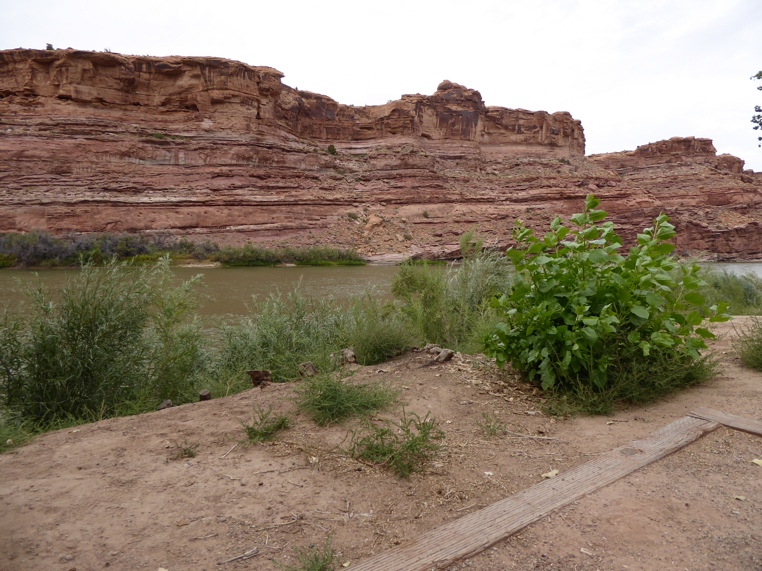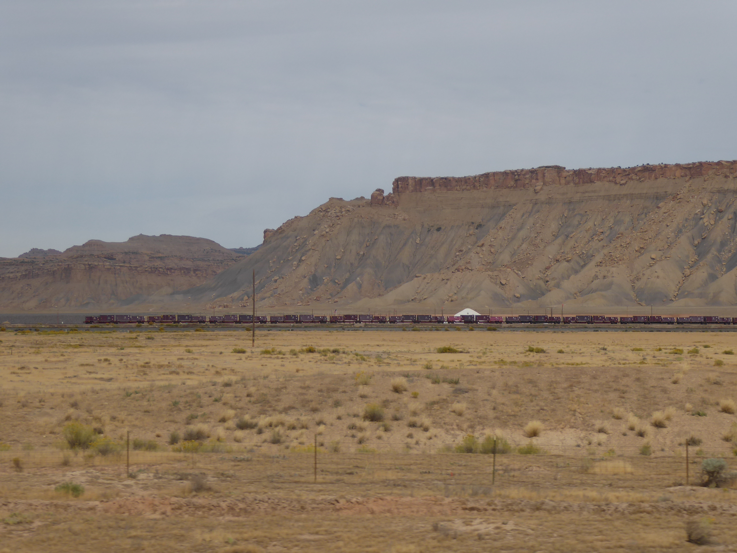 Leaving Rifle, we traveled in ‘losing elevation’ mode which the truck thanked us for. It worked splendidly. Why on earth, we asked ourselves, would we want another stronger, more powerful truck when the one we have did so well??? From an elevation of around 6,000 feet in Rifle, we dropped to 5,000 feet in Grand Junction, decreasing to 4,000 feet by the time we arrived in Moab. No surprise the truck did so well. As did I….celebrating the disappearance of my constant companion, an ’altitude headache’ – Mike says it’s the wine every night… but I refuse to believe him. From Rifle onwards, we drove downwards, through a steep canyon, leveling off as we reached Grand Junction. From thereon in, until we turned off the I70 onto the US Hwy 191 to Moab, it was flat with miles and miles of sagebrush and desert-like terrain.