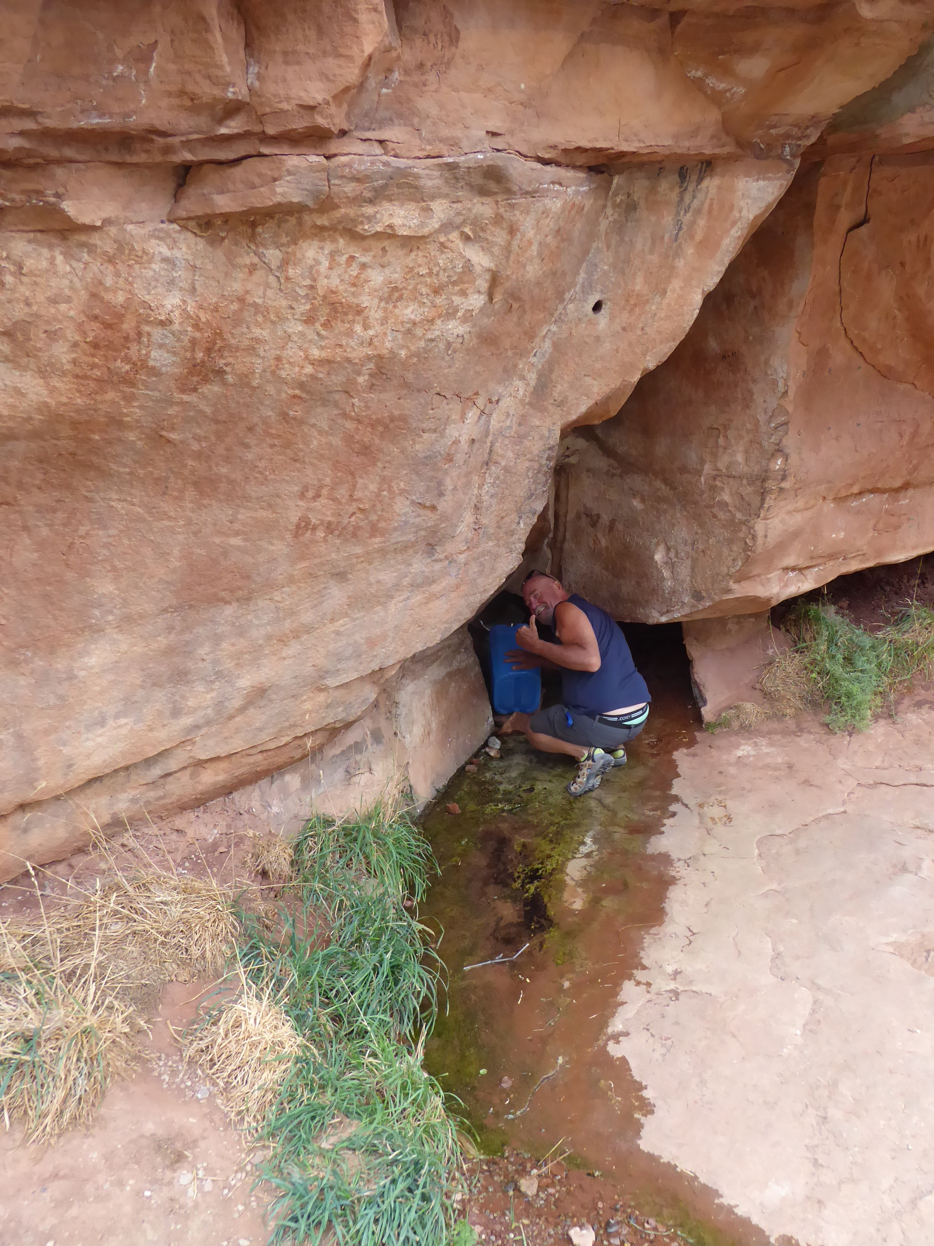 Soon, we were unhitched and settled in, ready for some exploring. We headed to Arches to get Mike’s GOLDEN AGE/SENIORS PASS which reduced our camping fee to half – always welcome. From there to search out how to realize our plan of kayaking down the Colorado River. We found Katherine at WILD WEST VOYAGES who completed the arrangements for us to do two, 10 mile sections of the river. She would assist us in dropping the truck at our end point, and taking us and our equipment to the starting point. When we asked about drinking water, she told us about the “MATRIMONIAL SPRING’, a natural spring where the water comes out of the rock, very pure. She said the story is that once you drink the water from this spring, you will be ‘married’ to Moab, and always return. We found it, drank from it, and yes, this may well become our new playground!