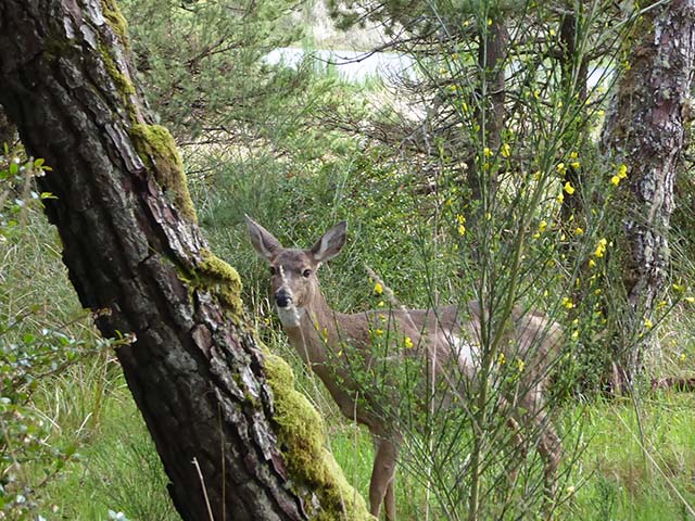 Our dream was a reality. We had arrived at Nehalem Bay State Park on the Oregon Coast. Our site was great. We were treated with several visits from the locals.