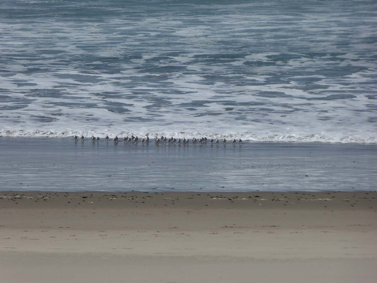 My favorite birds (in addition to eagles and hummers) are the sandpipers. I love the way they scurry about on the sand, forming a line to stay just ahead of incoming waves, then breaking rank again to see what delights the ocean wave has brought them, heads bobbing up and down with tiny bills poking into the sand – just like mini-drills.