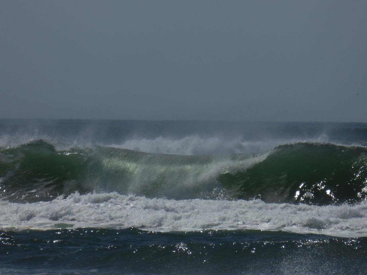 Cape Disappointment State Park is indeed beautiful and we enjoyed the time we spent hiking up the trail to the interpretive center and lighthouse followed by a long walk past the North Jetty along the beach. We stopped briefly to bathe in the sun and once again were treated to an even better performance of two seals surfing in the waves. When a wave gets ready to curl and become a breaker, the top third becomes translucent. This time, for just a moment before the wave curled, we saw the clear, unmistakable forms of two seals right there in the centre of the wave, seal shadows in the green translucence. Spectacular!