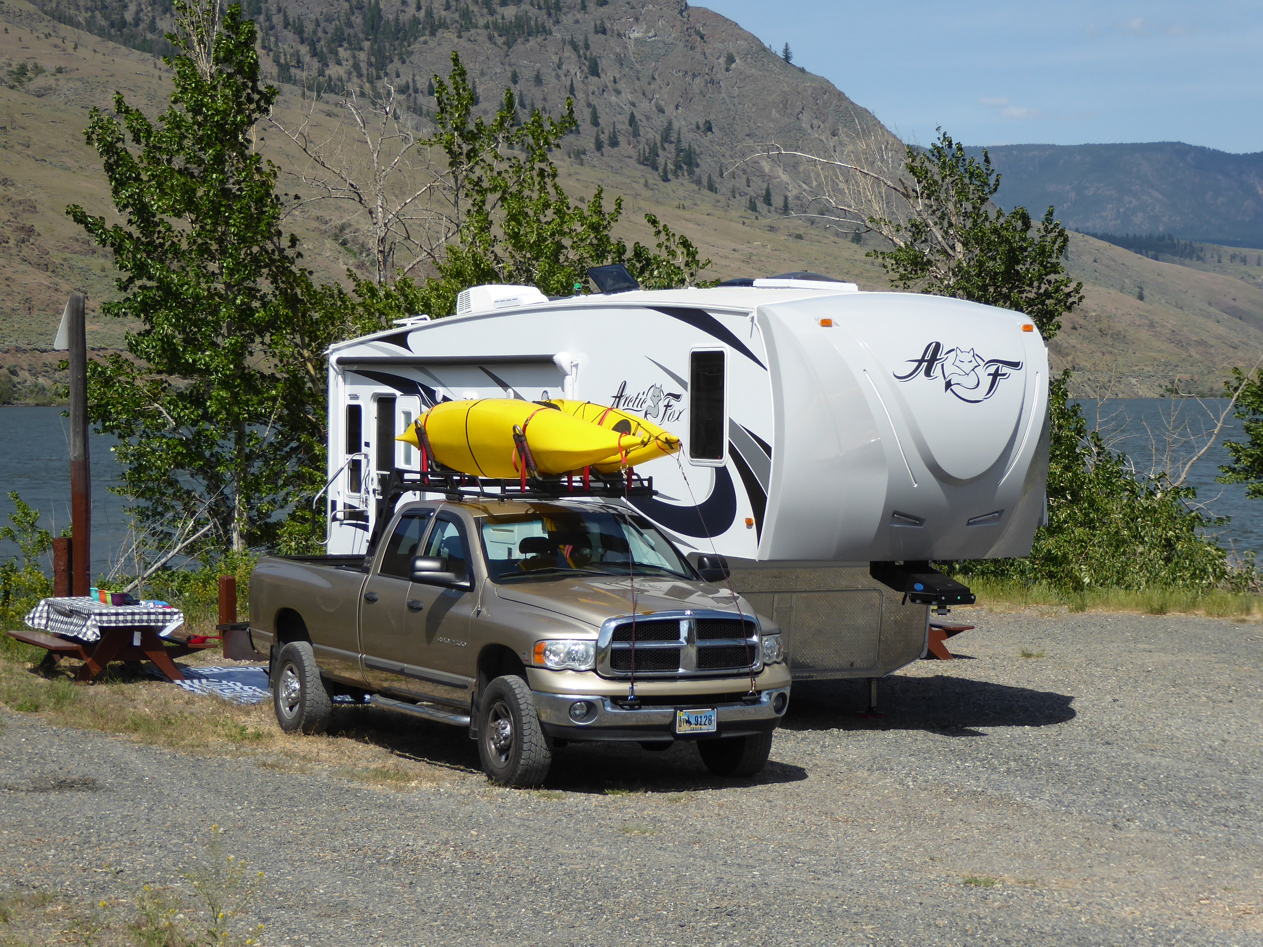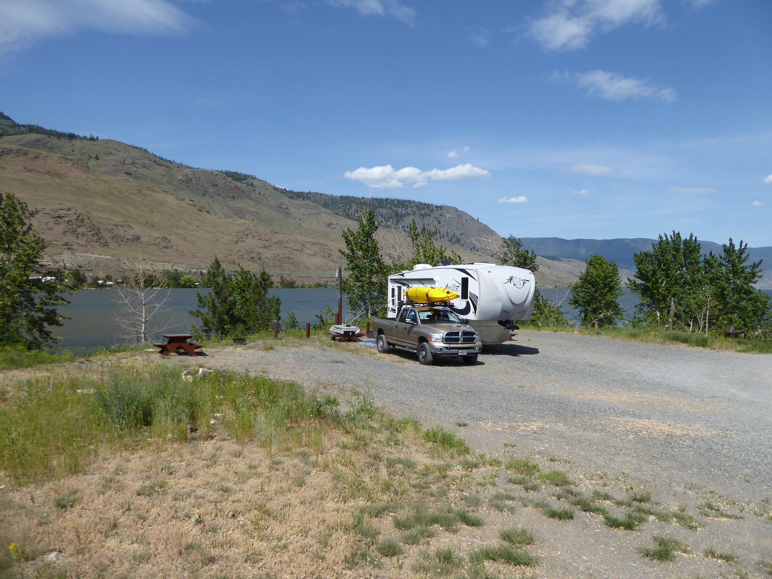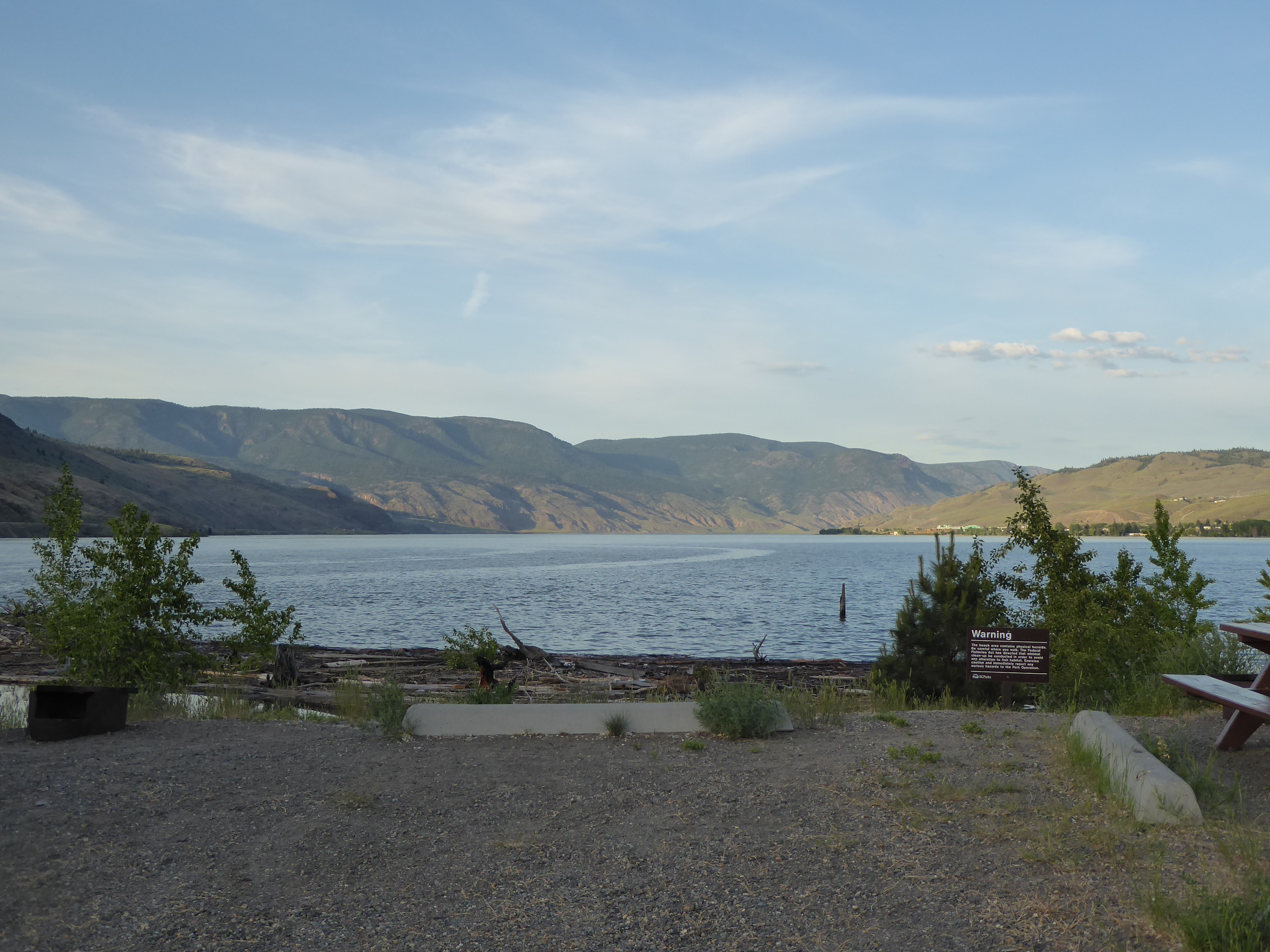 Steelhead Provincial Park is a small park in the town of Savona BC, on the banks of Kamloops Lake, just where it empties into the Thompson River. We stayed at Steelhead for 17 spectacular days. Spectacular for the good times with dear friends, for the views of the lake, for the maintenance of the park by the staff, for the cleanliness of its facilities (hot showers and flush toilets), and for the friendliness of the park staff and the fun we had with them.
