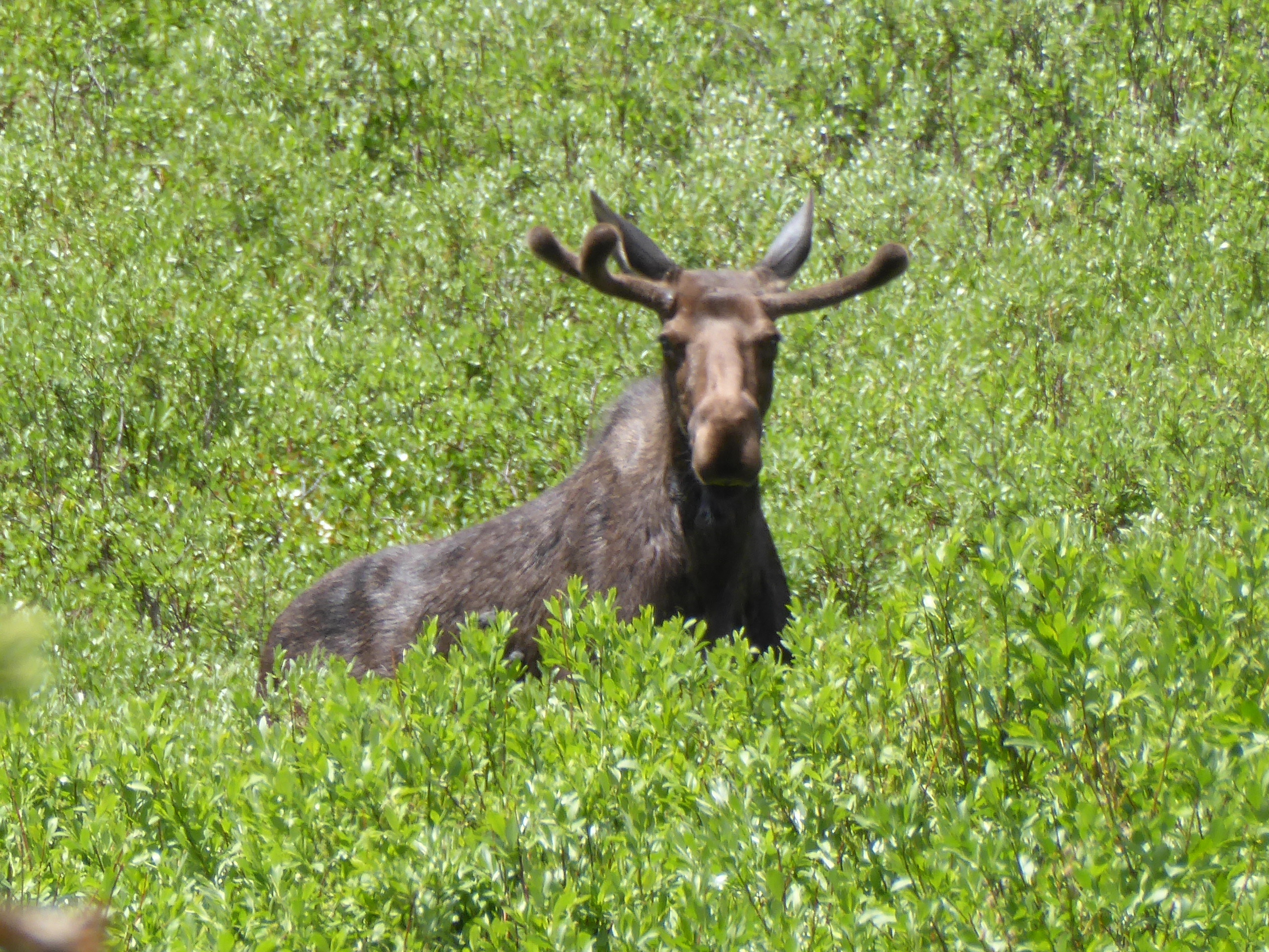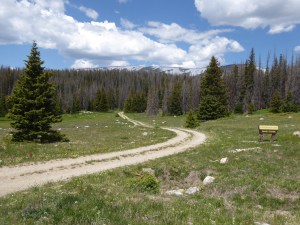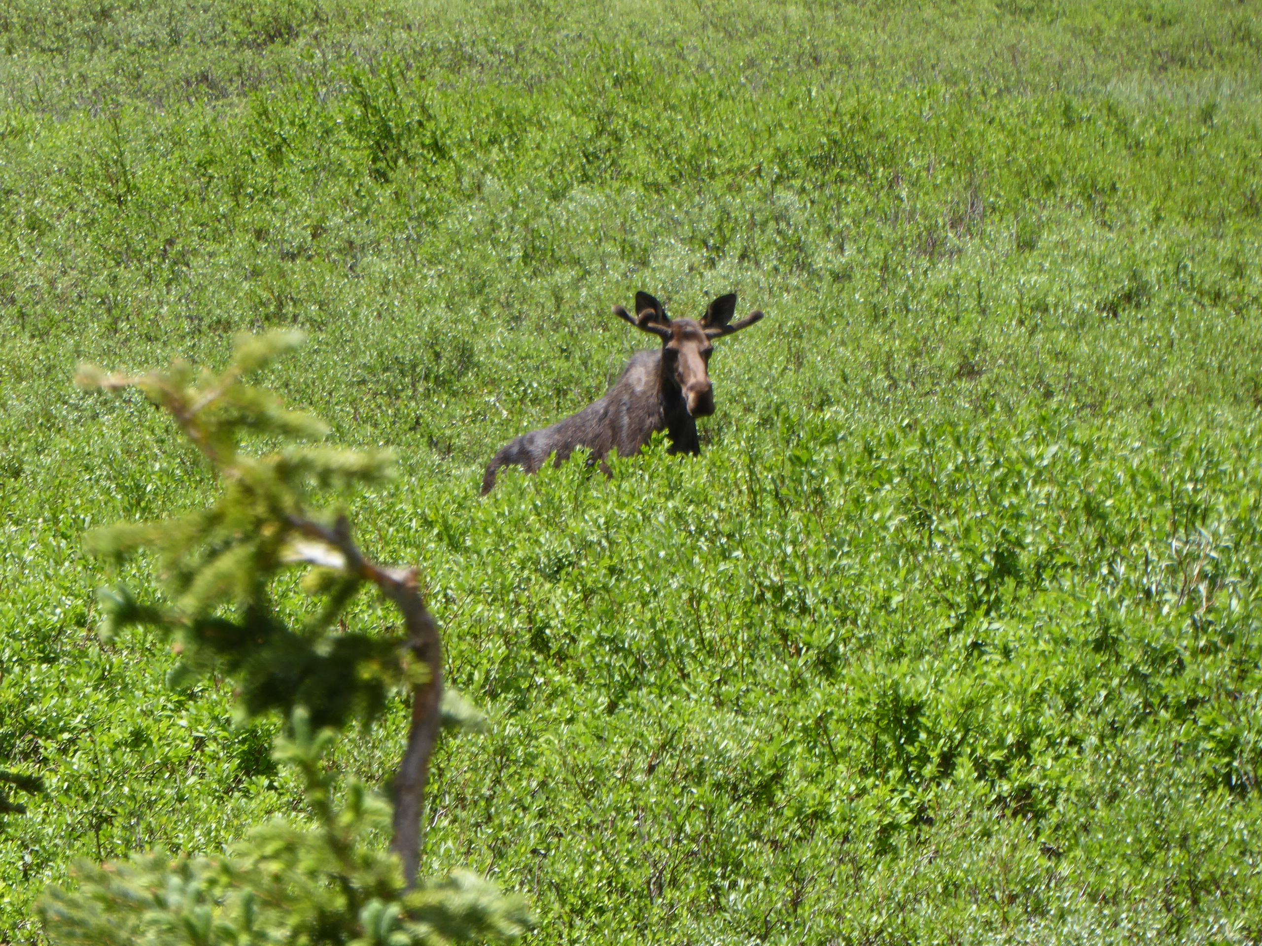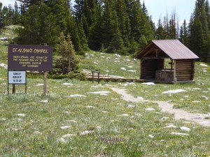 Along the way we stopped to check out one of the campgrounds, Brooklyn Lake Campground. On the way we found a sweet little outdoor chapel, saw a moose foraging in a meadow, encountered melting snowdrifts across the road with tire tracks to follow through the mess, and a jewel of a lake where the campground was situated. Good thing the campground was closed….not sure if it would be wise to bring our 33 foot fifth wheel there, but we’d sure love to camp there.