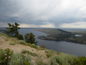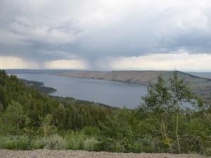 On the way back down, there seemed to be storms brewing all around us and sure enough, as we returned to Pinedale and were leaving the gas station, it started to rain. We headed first west and then north, towards Cora, on HWY 352. The rain turned into a driving hailstorm, making it impossible to have any kind of conversation inside the truck.