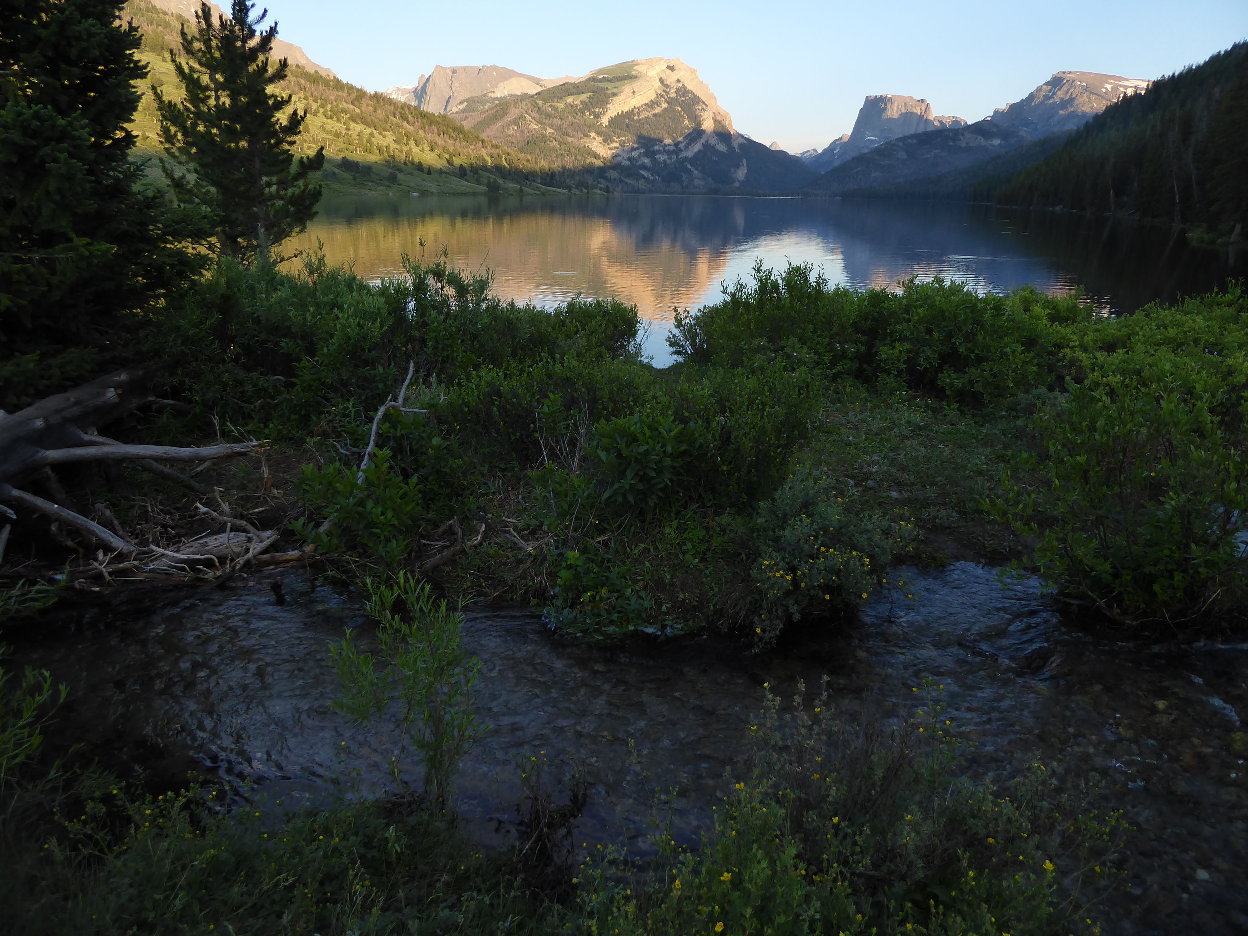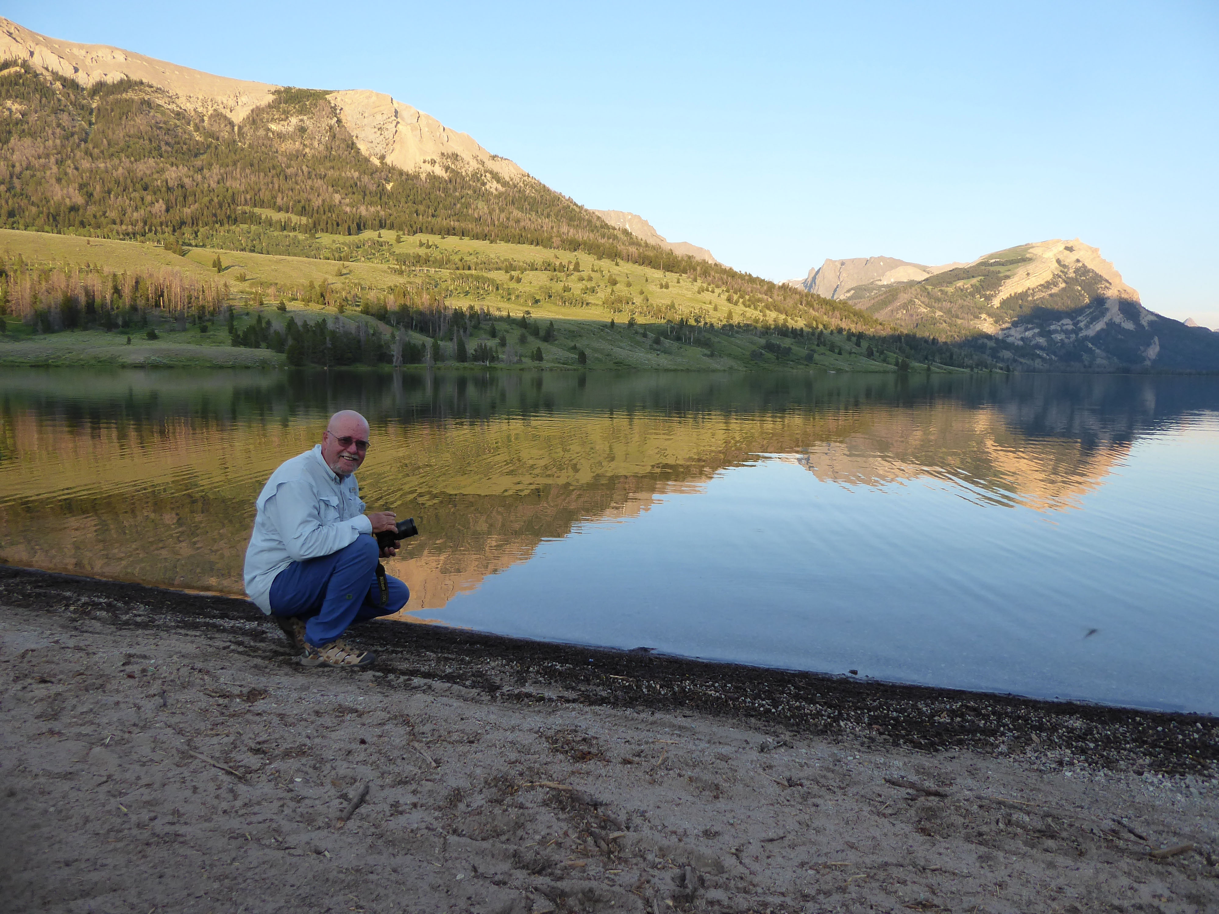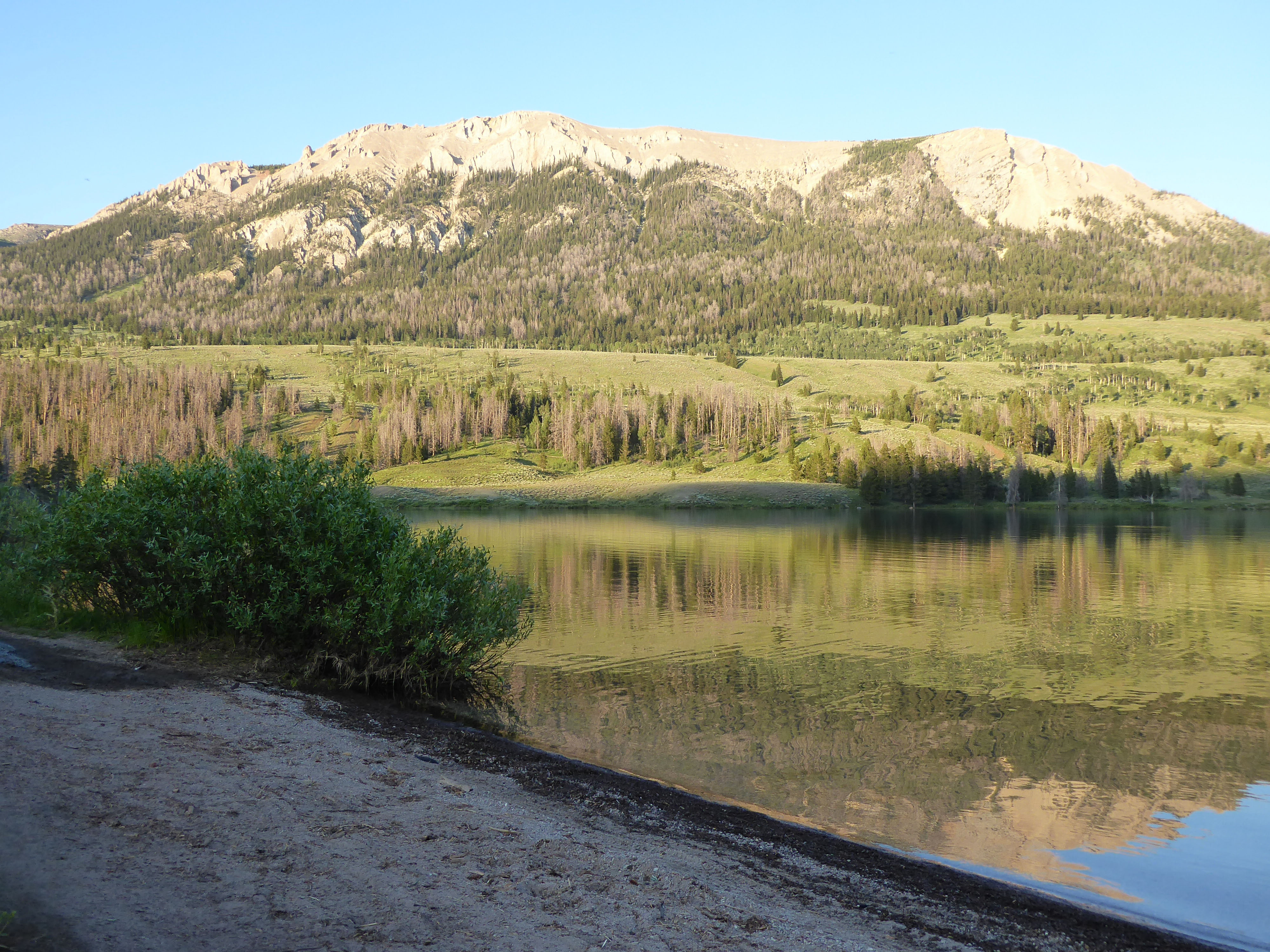 Next morning, our plan was to kayak to the end of the lake but a poor night’s sleep, the prospect of having to deal with mosquitoes….well….plans changed. we headed home. Safely insulated from the bugs in the truck, we enjoyed the drive back to where we had entered the Teton – Bridger Wilderness area.