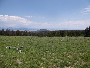 In Lander, we are on the eastern side of the Wind River Range. Our exploration required us to cross the range and get to the western side. We didn’t want to do that pulling a 33’ fifth wheel trailer so we packed our camping gear and headed off ‘trailer-free.’ We took HWY 28 out of Lander, over South Pass and headed for Pinedale. Crossing South Pass put us on the western side of the Wind Rivers. We could have continued on paved roads all the way to Pinedale but in the spirit of adventure, we decided to take the turnoff to Big Sandy which put us onto a well-graded gravel road winding through range country. We saw lots of trucks pulling travel trailers of all sizes and types. We could easily have pulled our fifth wheel-oh well! The day was sunny; the scenery spectacular; snow-covered peaks, miles of meadows/grasslands/wild flowers, and numerous ranches. Wyoming produced……we saw cowboys on horseback moving their stock from one range to the other!