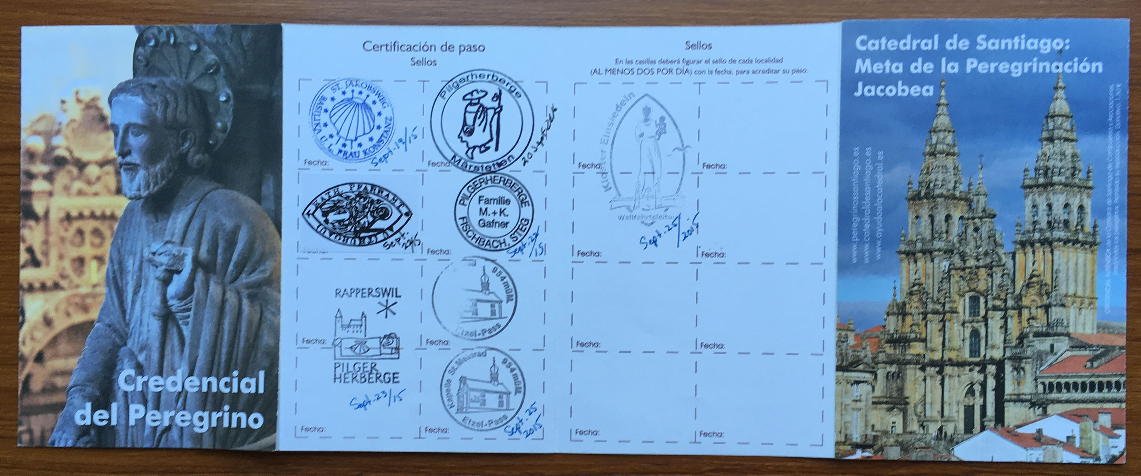 The credential folds out accordion style. As you walk the Camino, you get stamps at the chapels, churches, and pilgrim hostels where you visit/stay at.Our Physical Fitness Preparations: