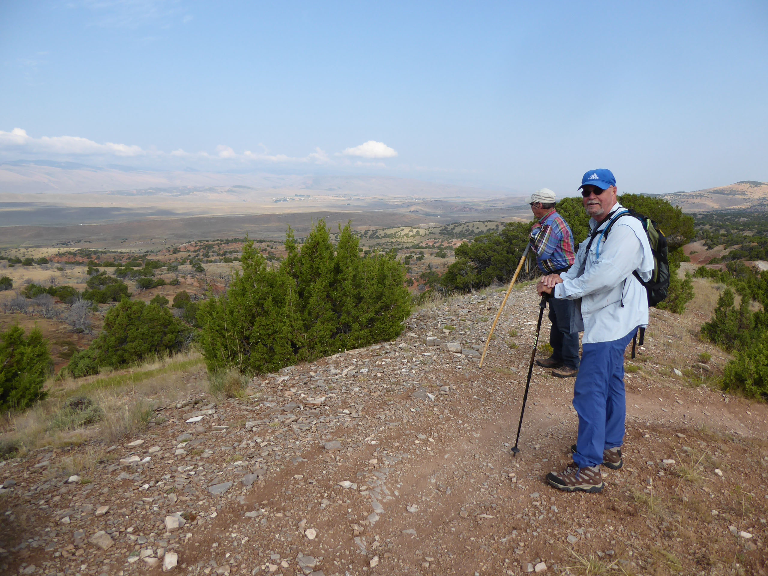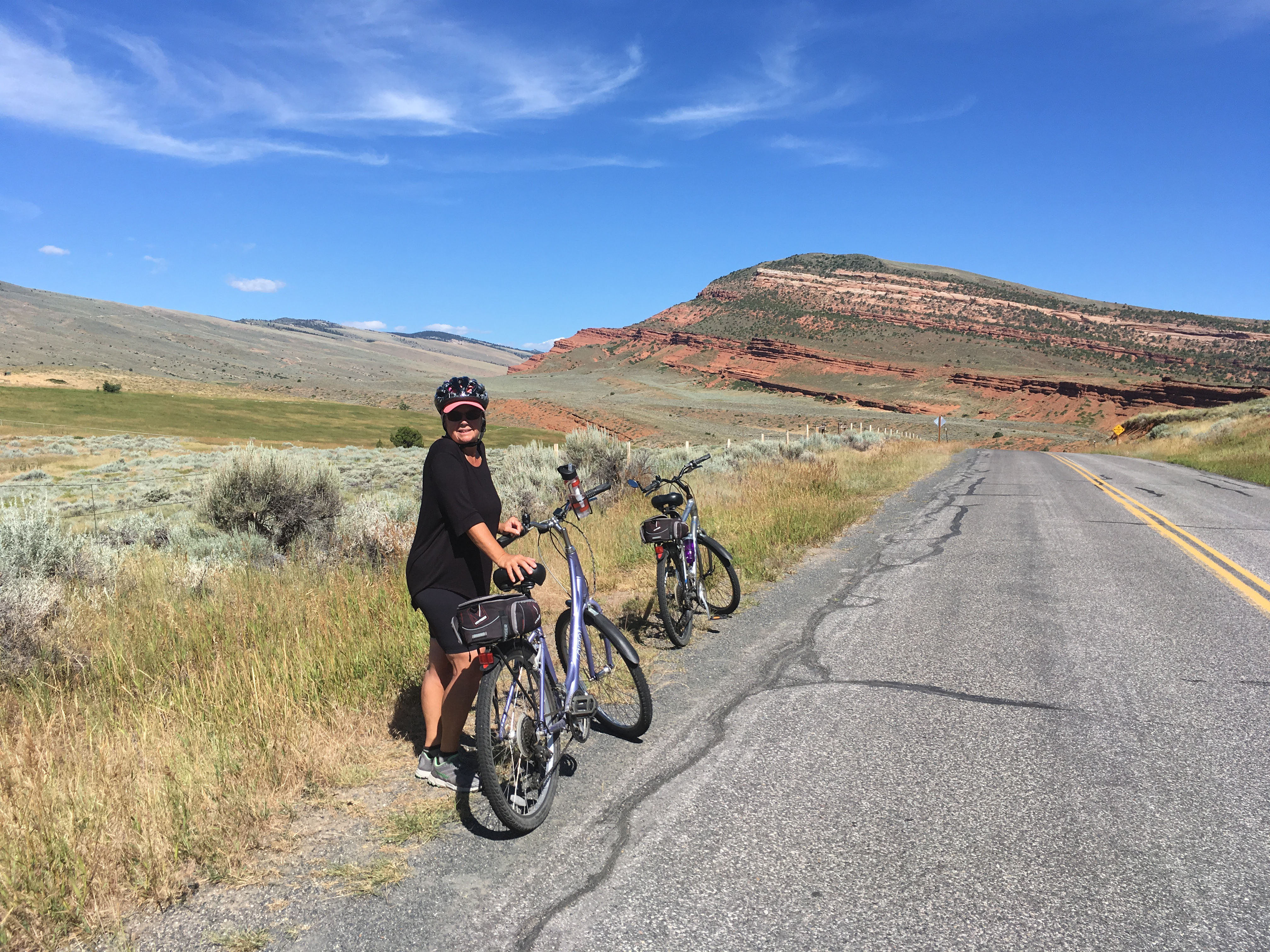 Lander, Wyoming is the perfect place to train for the Camino. Not only is it extraordinarily beautiful with a moderate climate, it has an abundance of hiking and biking trails all at ELEVATION….which is excellent….if I can hike steep uphills for 10 km at 7 – 9,000 feet, then I should find it a walk in the park at the lower elevations of the Pyrenees in Spain. One of our favorite places to hike is a park developed for mountain bikers, hikers, and horseback riders called “Johnny Behind the Rock.” We also love Sinks Canyon. Here are a few pics.