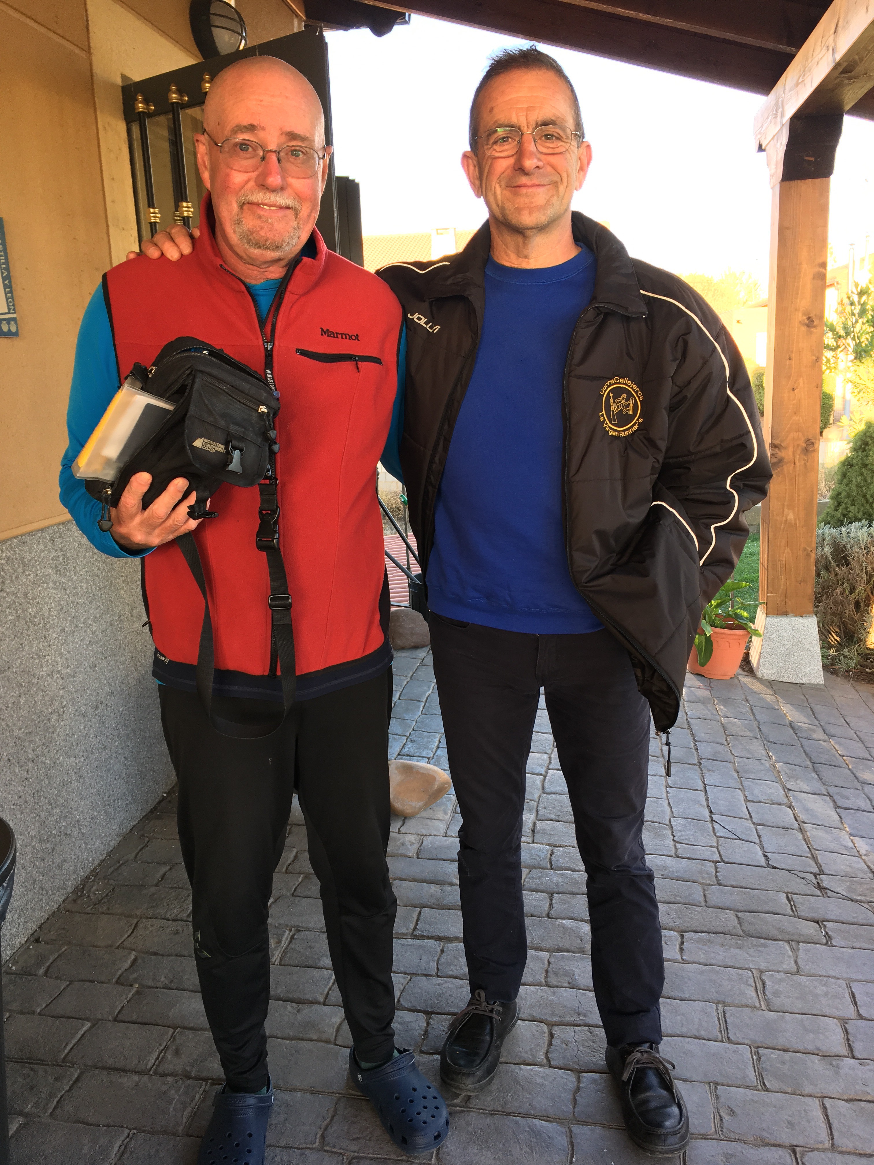 Although we had planned to stay at Villavente; we ended up staying only a short distance further at Villar de Mazariffe. We went for a snooze and at 645pm were woken by a knock on the door to tell us that there was a man waiting to see us. Mike went up first. By the time I got there, I saw Manuel from the rest stop in Oncina, giving Mike his bag, with all the contents intac. From what we could understand of the situation, the bus driver had found the bag, contacted the Leon police who contacted Manuel.