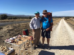 We were using a great guidebook which had been highly recommended to us, written by John Brierley. (As we walked along, we saw copies of the same book stuffed into numerous N. American pilgrims’ pockets and packs (Brierley must be making a killing since we saw so many and such a variety of editions!) Brierley divided the Camino Frances up into 33 stages; each stage with comprehensive maps, diagrams, lodging, and food. We learned that a sort-of “Brierley’s Brigade” as Michael called it, had developed along ‘The Way’ – many pilgrims who followed the Brierley book stayed at each beginning and end village/town/city at each stage. The distances for each day fell between 18 – 30 km/day. After some experimentation, we decided we wanted to listen to our bodies as to when to stop and to stay at the albergues in places between Brierley’s stages. Oftentimes there were fewer people, smaller albergues, and different choices in ‘Pilgrim Meals’ in these places. We stopped , usually at the first albergue we’d come across since our sore feet, legs & lungs and/or growling stomachs insisted.