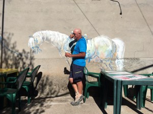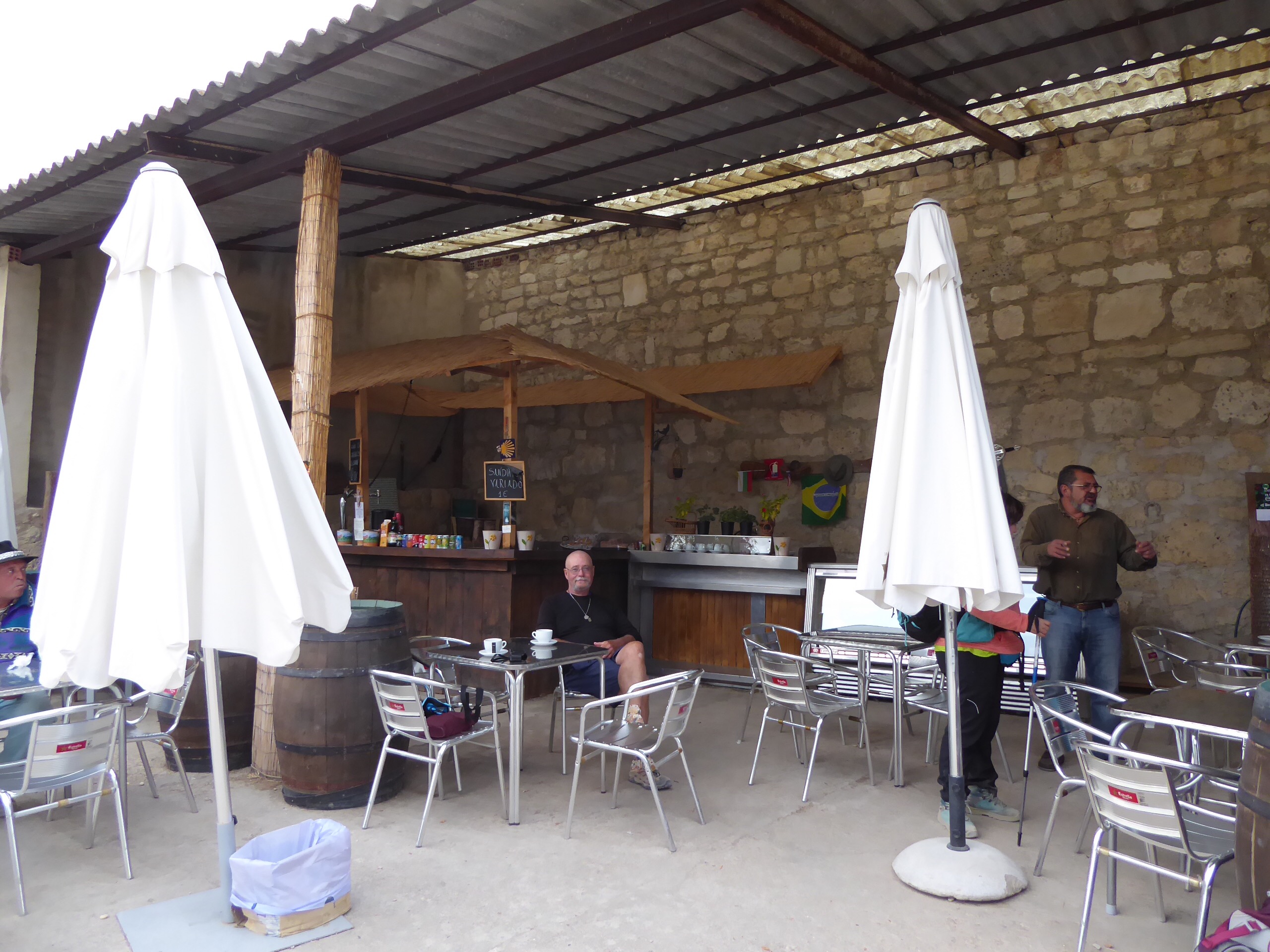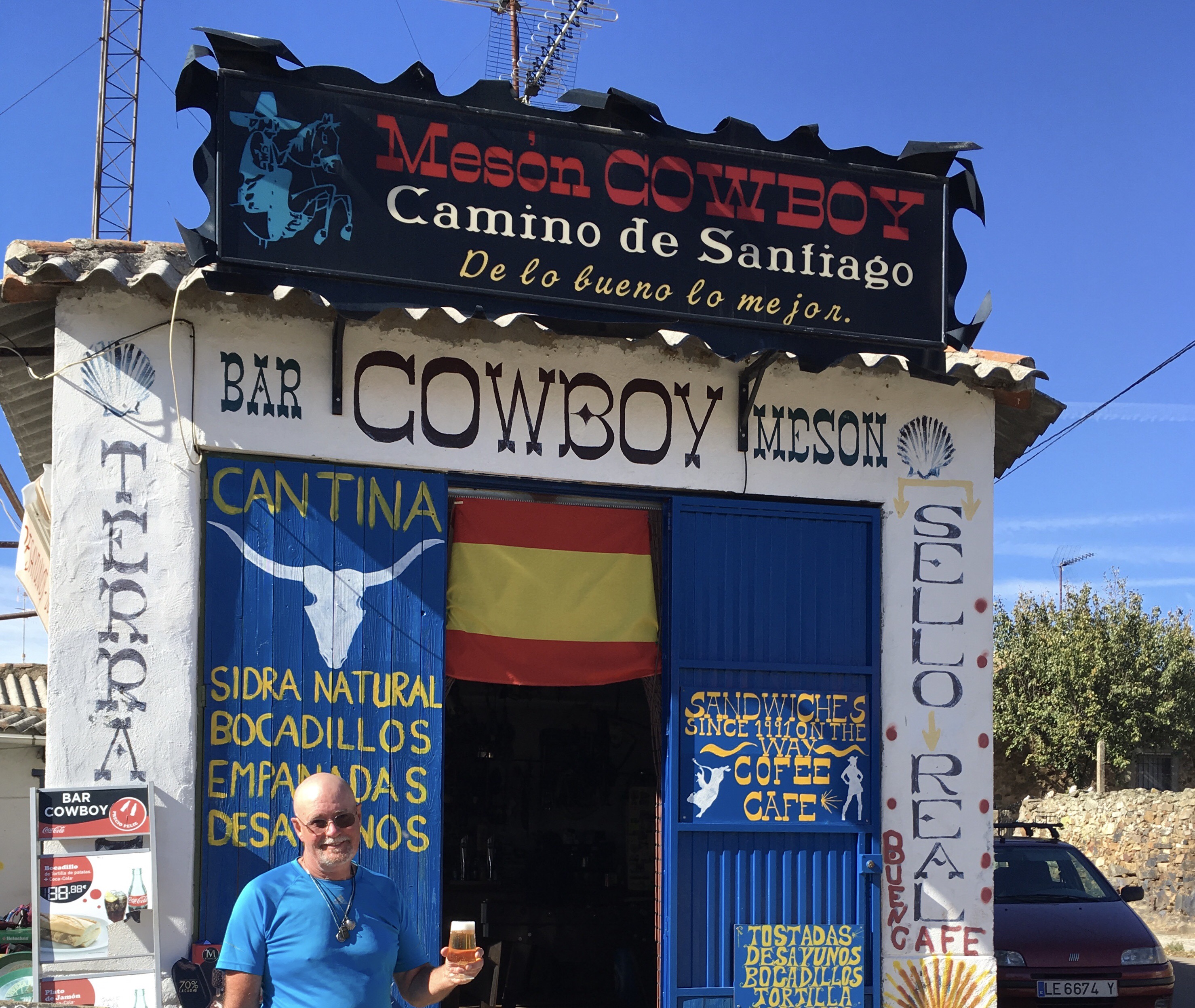 Sometimes our ‘coffee moment’ started before the day’s walk began if the cafe was open early; other times, our ‘coffee moment’ happened along the way after an hour’s walk; sometimes (rarely) even after a 3 hour walk. We preferred to have a coffee and something to eat before we started but sometimes we started with just the water in our camelbaks. Then, finding a cafe that was open and serving breakfast was pure ecstasy. Most often, breakfast consisted of “cafe Americano con una pocita de leche” (coffee with a tiny bit of milk) with a croissant for me and tostada (TOAST – which turned out most often to be warm slightly singed bread – few places had a toaster and threw the bread briefly on the grill) for Michael. Once I finally learned how to say “scrambled eggs” or “huevos revueltos” in Spanish, we sometimes had eggs for breakfast/brunch. We got so we actually liked to start with just a coffee, walk for an hour or more, and then stop for breakfast/brunch.