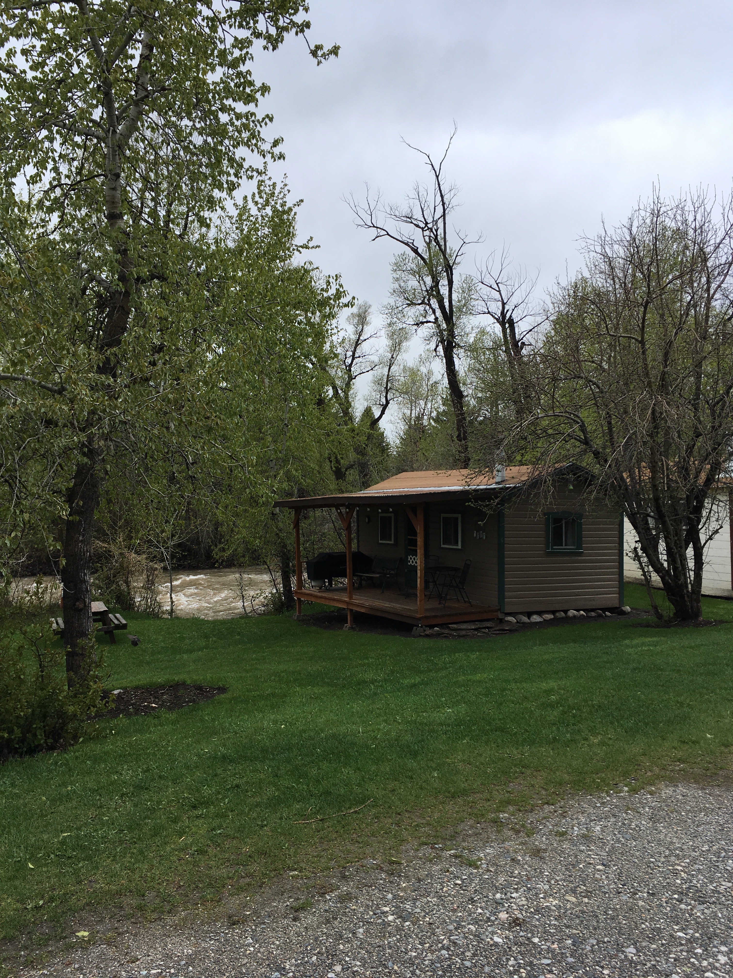 Also found these cute little cabins for rent in McLeod, right beside the raging Boulder River – high and still rising apparently.