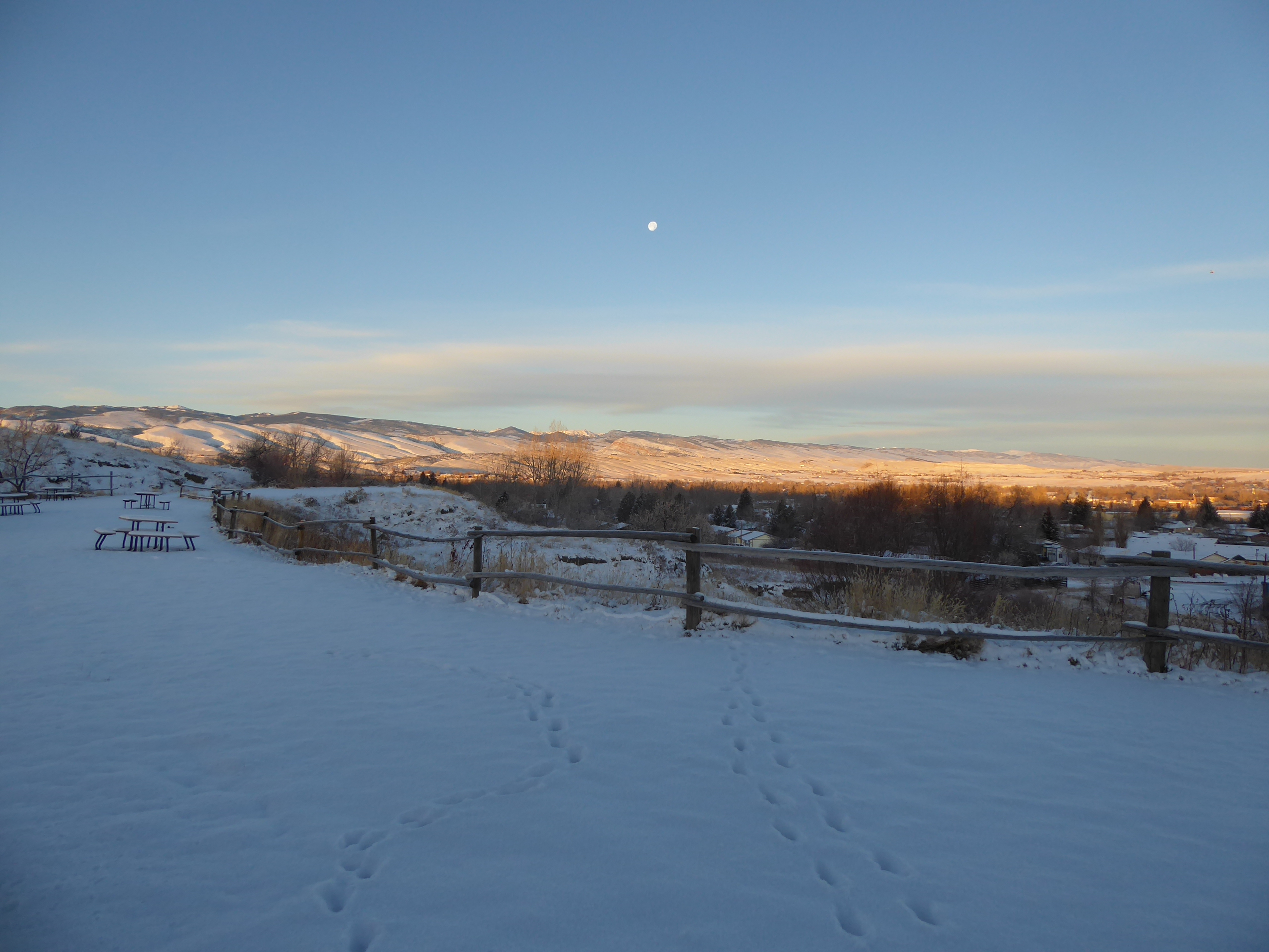 ……..getting settled back into our little home on wheels, and seeing the dentist before heading to Lander. We left Laramie and arrived in Lander on a beautifully sunny day and got ourselves all set up. That night there was a big snow storm.