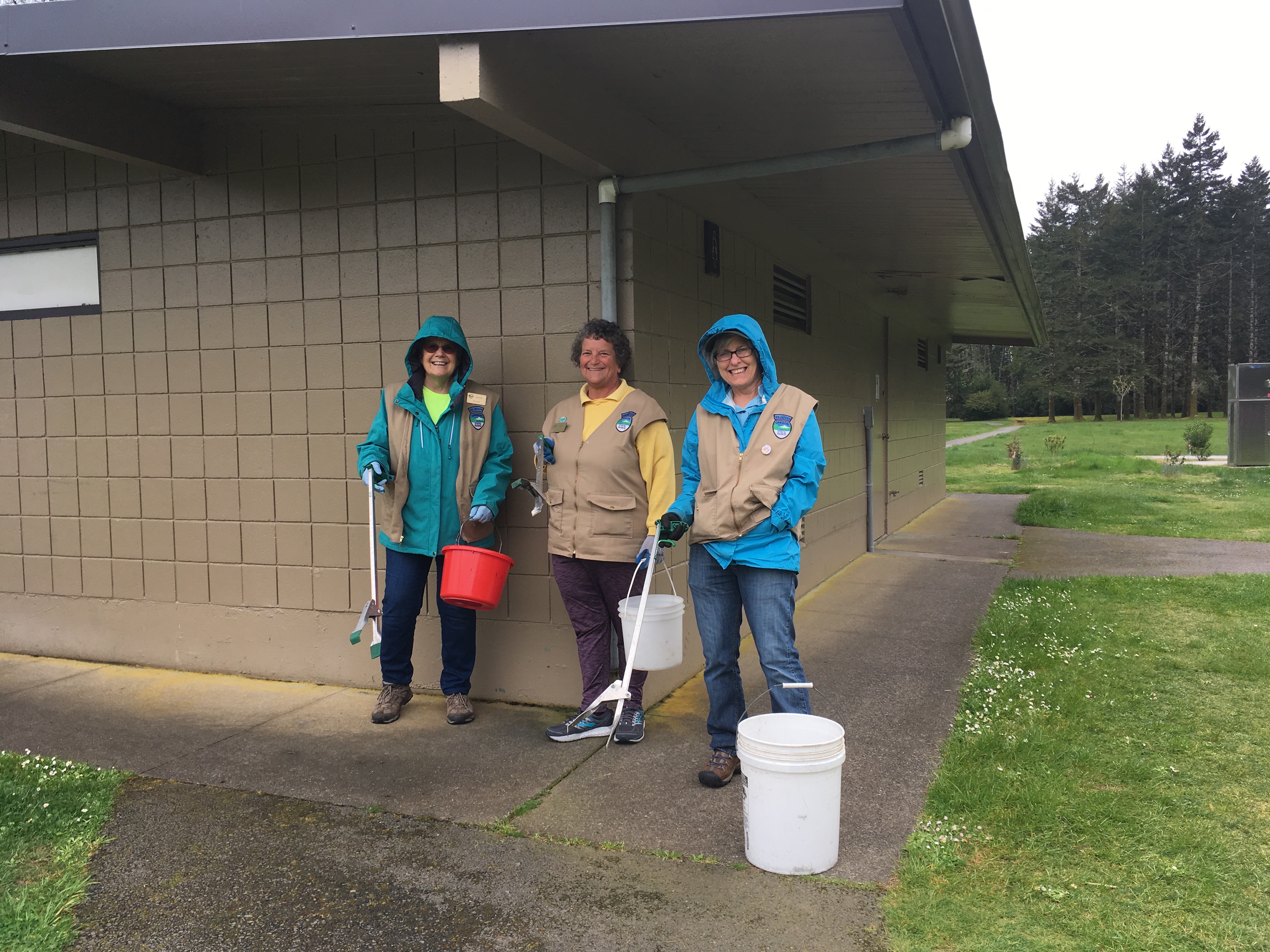 That question stimulated us to actively seek a camp-hosting position on the Oregon Coast, a favorite holiday destination of our younger years. Recalling those long beach walks, rain/shine/or both, the joy of finding beach glass, of laughing at the antics of the sandpipers as they ‘ebbed’ and ‘flowed’ with the incoming waves, of sitting silently watching as the creatures of the tidal pools ventured out, of the sun on my face, wind in my hair, had us longing for more of the same. Lucky for us, William Tugman State Park needed “Meet and Greet Hosts” for the months of April and May.