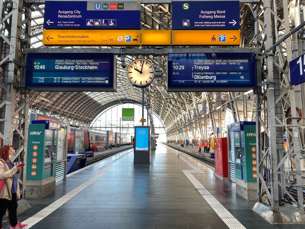 It took us a while but eventually we found our way from our airport haven to the main train station in Frankfurt. So so busy with people going every which way but oh the sights to see….from the way people were dressed to the Italian food vendors to the architecture….awesome!