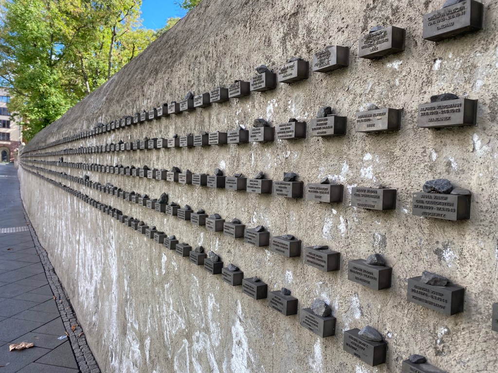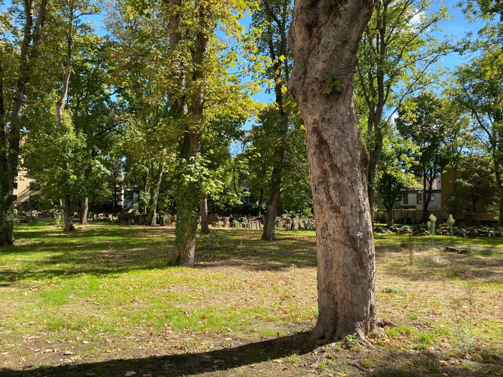 There is a wall around the cemetery and embedded in the wall are small name blocks commemorating the nearly 12,000 victims of the “Nazi mass murder of European Jews” and where they died (Auschwitz, Treblika, Bergen-Belsen and so on.) Very sobering and moving but also one of the most beautifully serene cemeteries I have been to visit.