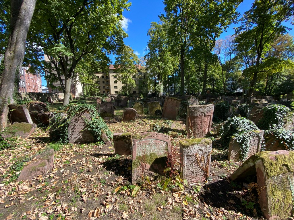 `“In 1939, during the Nazi regime, the Jewish community was required to sell their cemeteries along with their other properties to the City of Frankfurt….the plan was to level the cemetery, which began in 1943, during WW2. The demolition was halted due to bombings and debris and rubble were dumped there instead. As a result, 2,500 tombstones remained fully preserved along with thousands of shattered tombstone fragments…..The cemetery was returned to the Jewish community after the end of Nazi rule.”