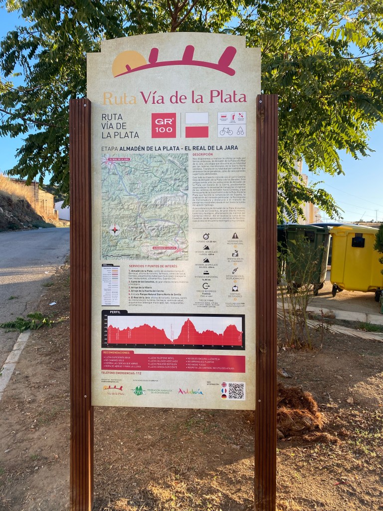 As we headed out of Almaden de la Plata, we found this great sign outlining the distance, ascent, descent and other information, to Real de la Jara. It showed a steep descent followed by a steep ascent halfway through the walk. It may have been shorter than previous days but no less challenging in terms of terrain……a grand roller coaster of a walk. But so beautiful and interesting.