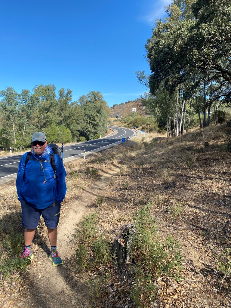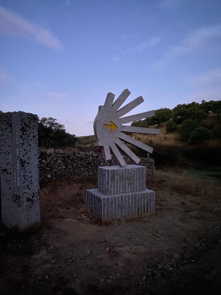 Not too much to highlight today other than that the weather was cool enough for us don scarves and wind jackets. We like the weather cooler. We found ourselves walking a lot faster and knocked off the kilometres quickly, finding ourselves at more or less the halfway point at the Leo Hotel, a Spanish version of our travel plazas in the USA. Stopped for lunch there….potato tortilla and a croissant and fresh pressed orange juice. Continued on. The way led us between the dual carriageway routes and was nice. We could hear the traffic but it wasn’t bad.