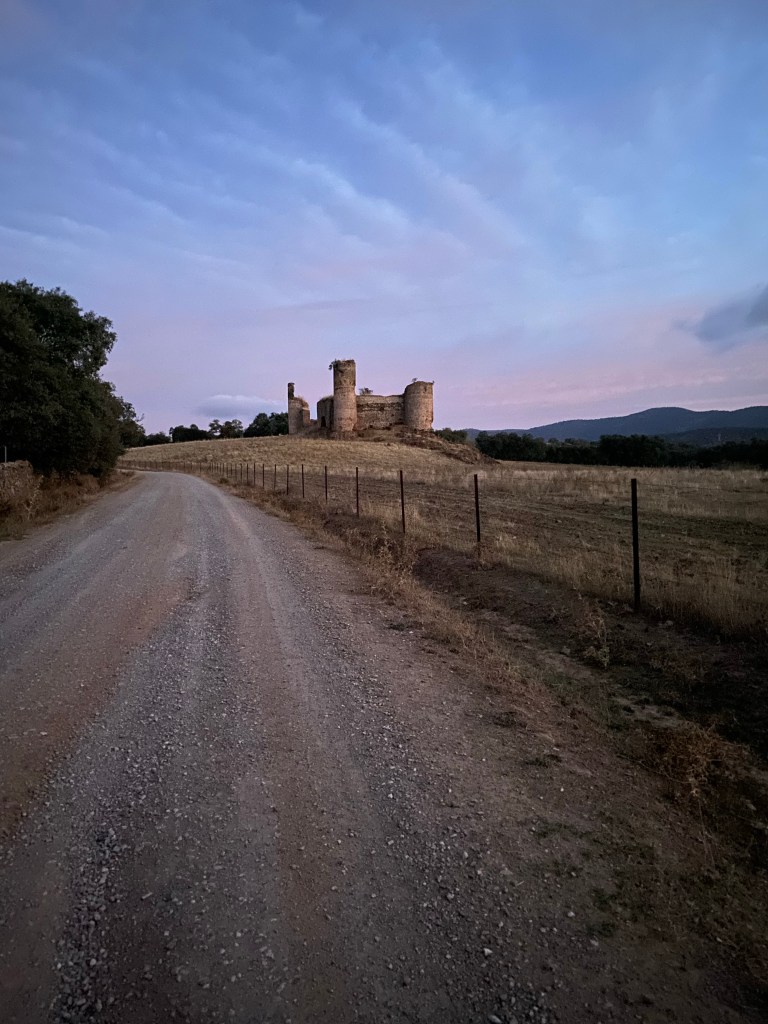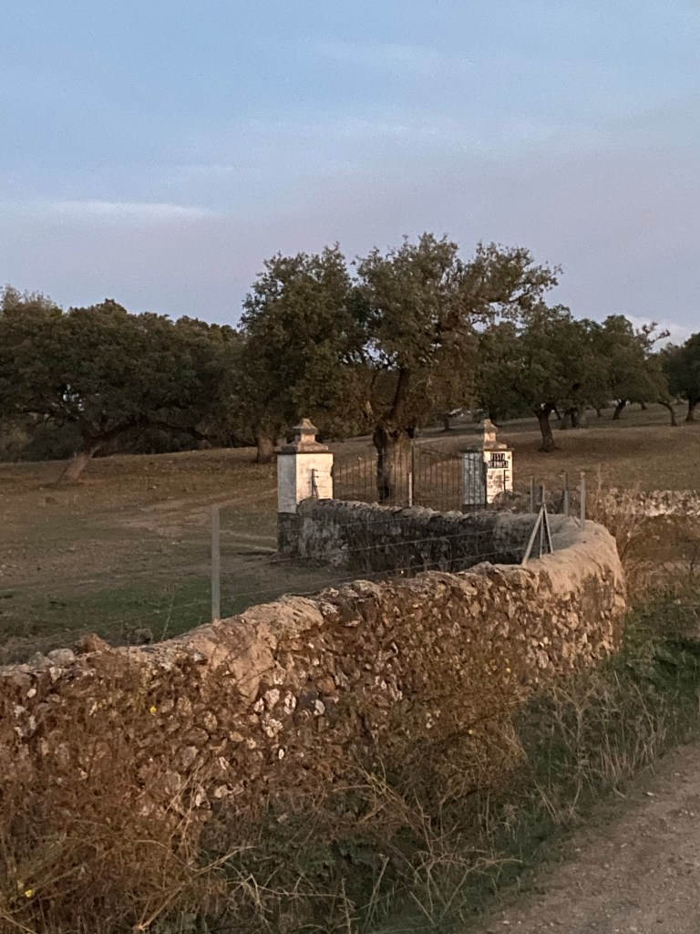 On the way out of town we came across another sign similar to the one we’d seen in the previous town but because it was so dark still, the photo didn’t turn out so well. Just as the sun was rising, we passed by the El Real castle. Crossed a stream into Extremadura.