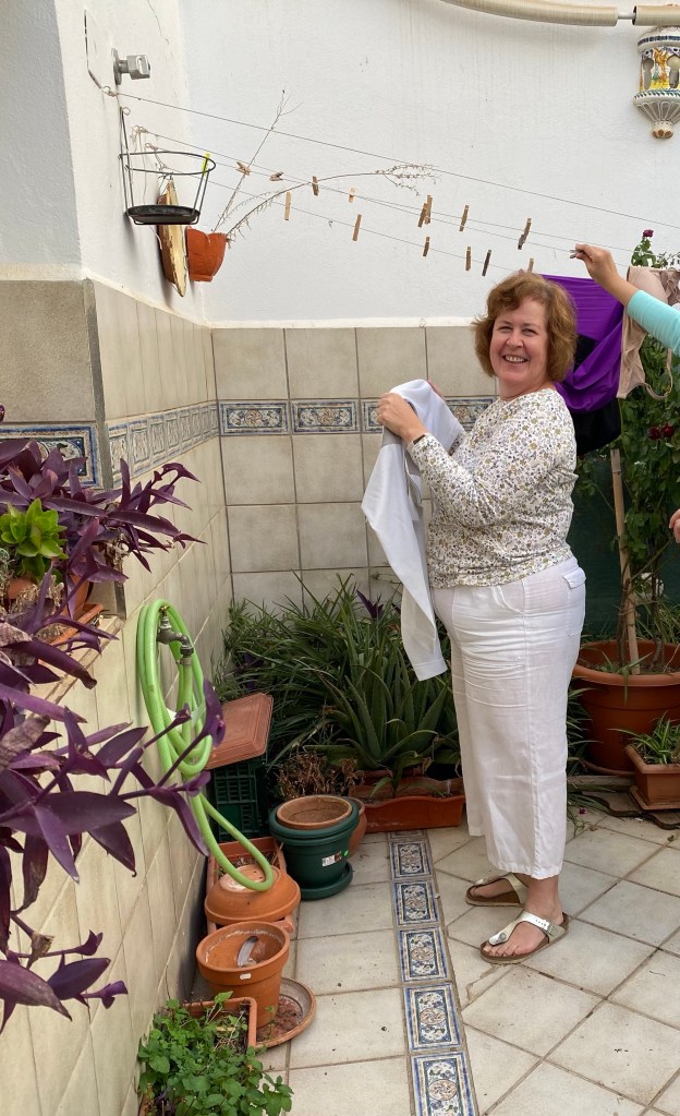 Much soul searching last night. Thanks to the very great kindness of Claire and Antonio here at the albergue, we had a good rest. They cleared out a room they use for storage which has two fold up beds and made it available for us. Cleaned up, rested and then we went for a walk to find the farmacia-closed. Found the Italian restaurant that Claire had recommended and had lunch sitting outside. It was a very busy restaurant and it was the middle of the lunch time between 2 and 4. Off to the Supermercado for a few supplies and then spent the rest of the day resting. I talked a lot with Claire. She is fountain of knowledge of all things Spain so I was able to ask all the questions I’d been pondering. Later, Antonio came with a blood pressure cuff and we discovered Mike’s pressure was up, quite a bit more than pre-camino levels. Next morning, it was back to more normal levels.