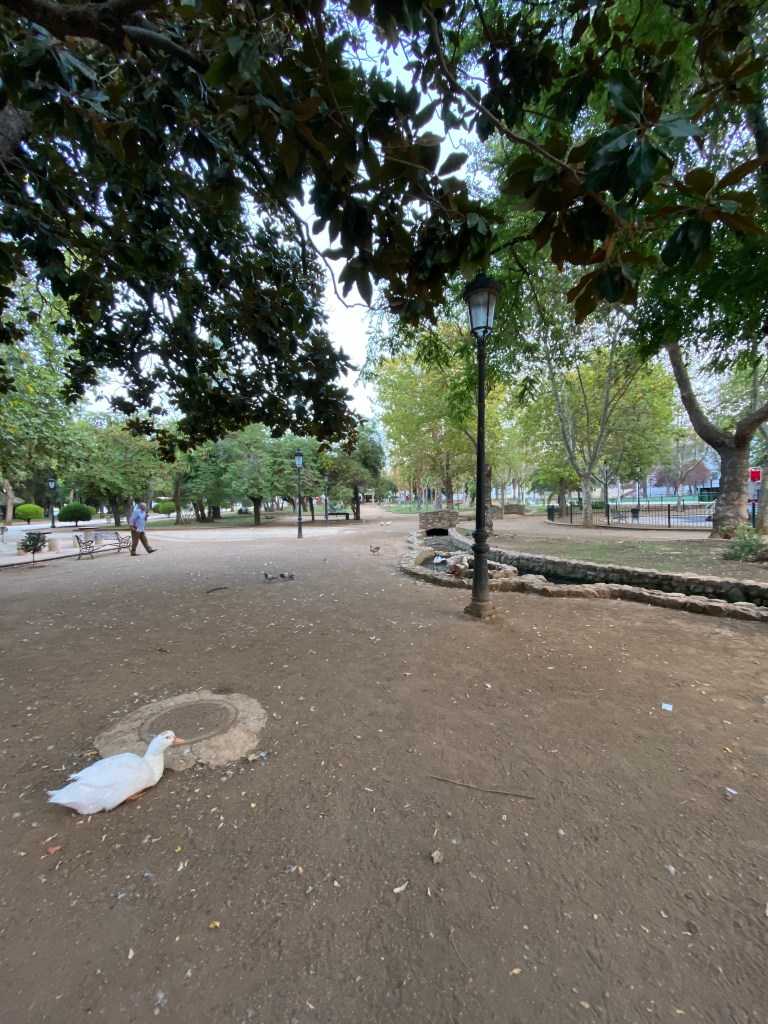 Later in the day, we moved to a room upstairs in the albergue. We holed up for the afternoon and evening, only venturing out later to find a farmacia for cold meds. A few pics of the park and …..