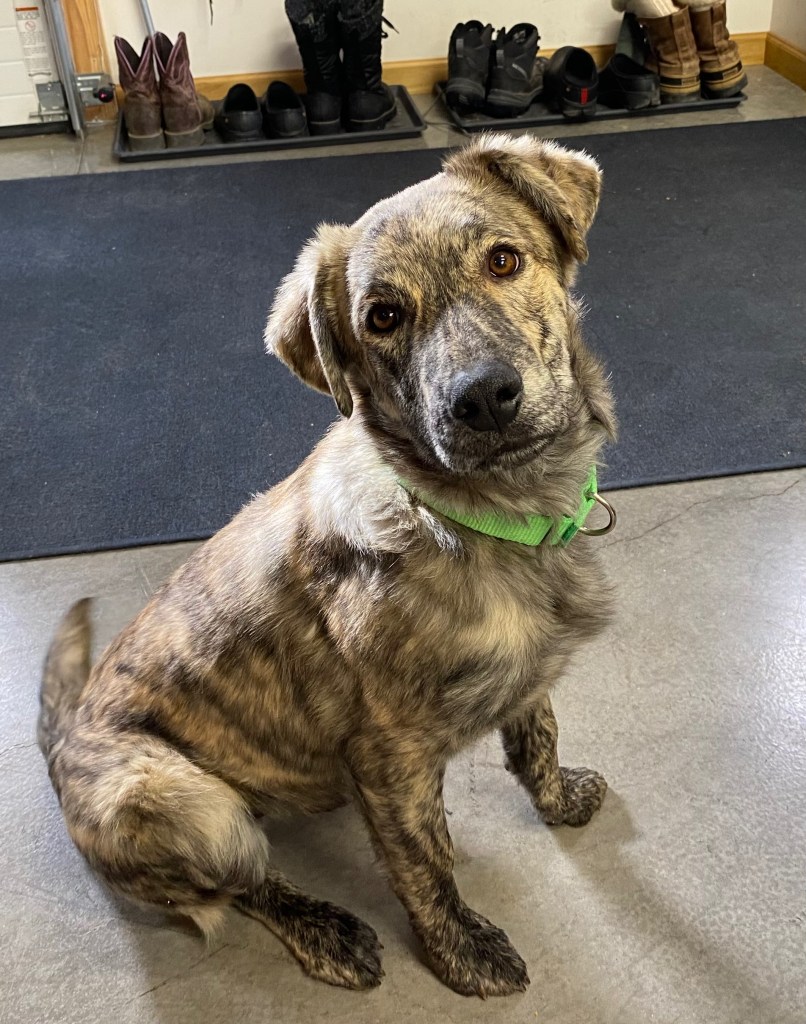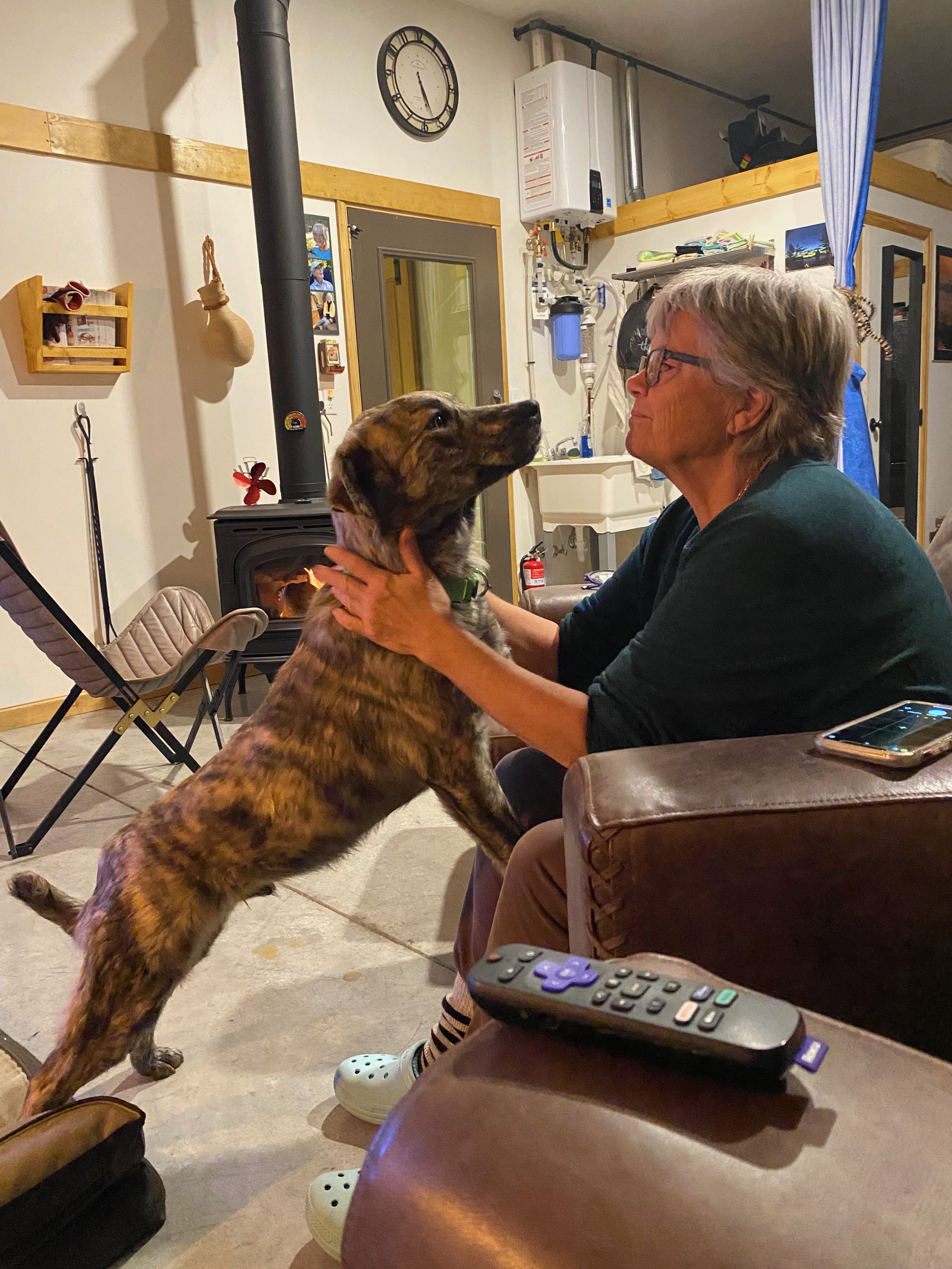 Initially, Marley was highly anxious and reactive to new sounds. Nobody knows what happened to him. He was found wandering on reservation lands by D’s husband Scrooge (hence the name Marley) who was able to coax him into his truck to be transported to The Pet Connection to be cared for by the lovely, dedicated people at work there who advocate for the canines and felines needing care, kindness and help finding forever homes. When they took him to Lander Valley Animal Hospital for examination of his leg, they determined that the leg fracture was at least 4 months old, making him only 5 months old when the “accident” happened. Poor pup to have lived with the immense pain of that wound while fending for himself. He has every right to be anxious. The deep infection in the bone was not able to be healed and after time and antibiotic treatment proved ineffective, an appointment for amputation surgery was made.
