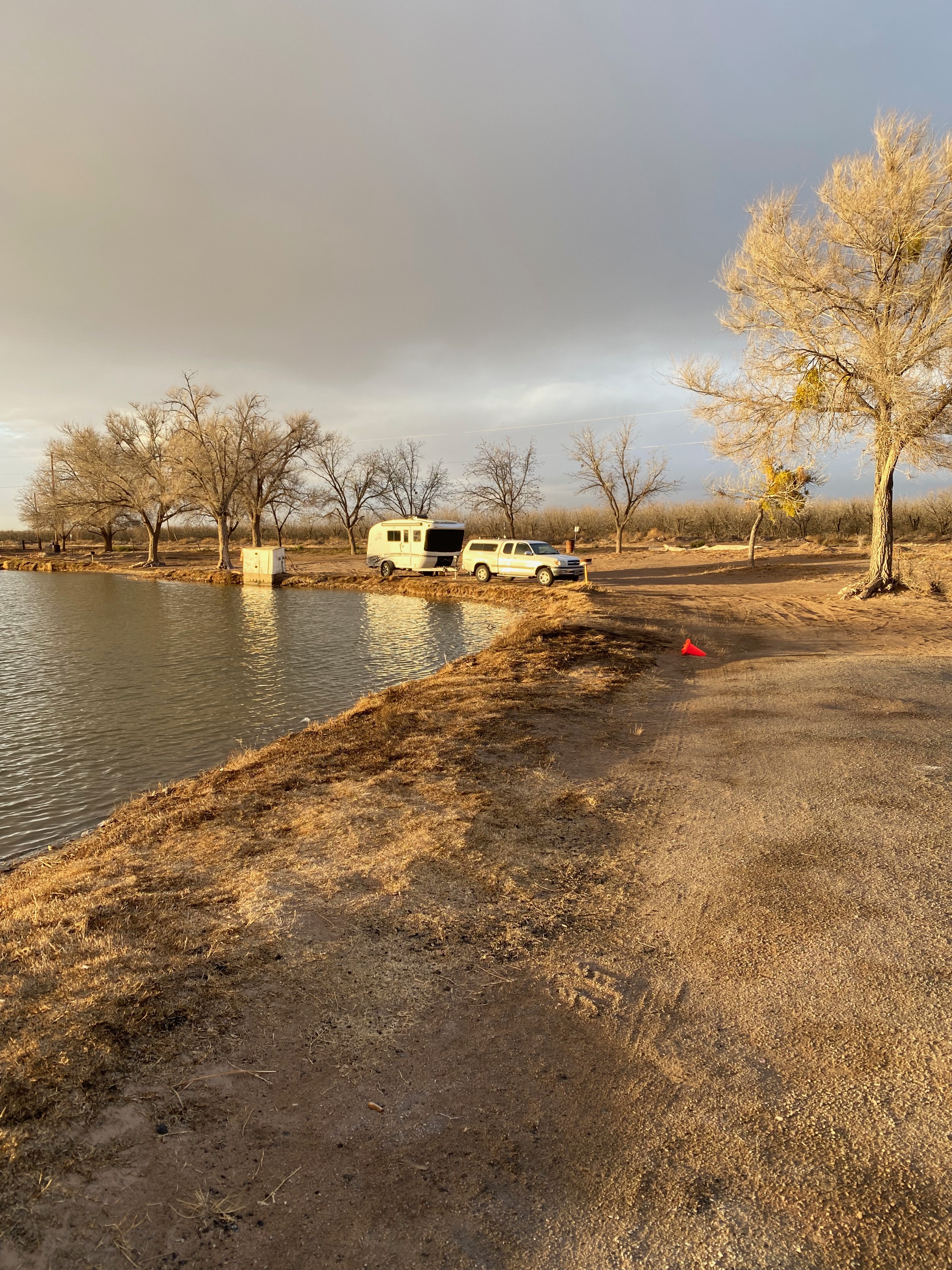 So off we went. Mostly we just drove and drove and drove. As we drove, I tried to find places to stay but everywhere was full until we called this place, Hideaway Lakes RV Campground. They had space. Followed all the directions but when we made the directed turn to the park, we found ourselves on a packed dirt road stretching before us through a pecan orchard. “Where on earth is it taking us?” we asked each other.