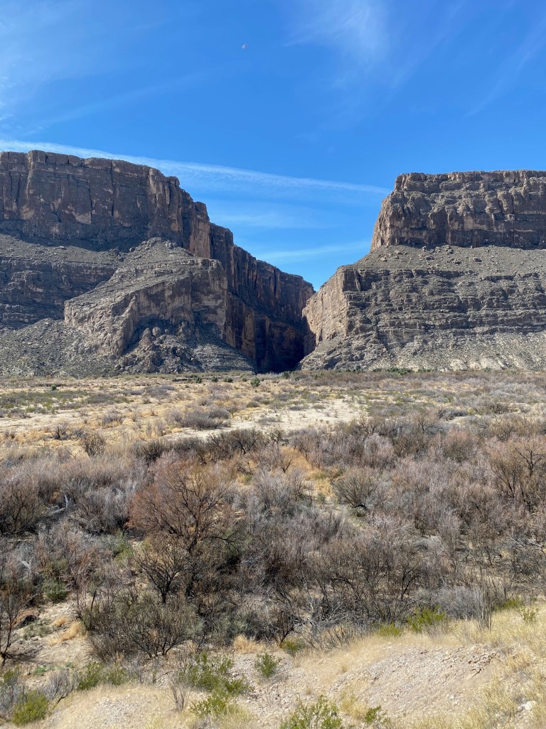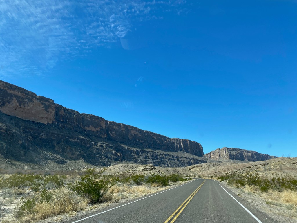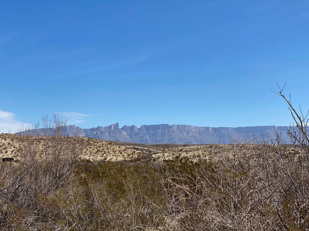 Explored the park. Entered through Persimmon Gap, the north gate and headed to do the west side of the park…to Panther Junction – then did the Ross Maxwell scenic drive to Santa Elena Canyon, where the Rio Grande flows through. On one side is Texas, on the other, Mexico.