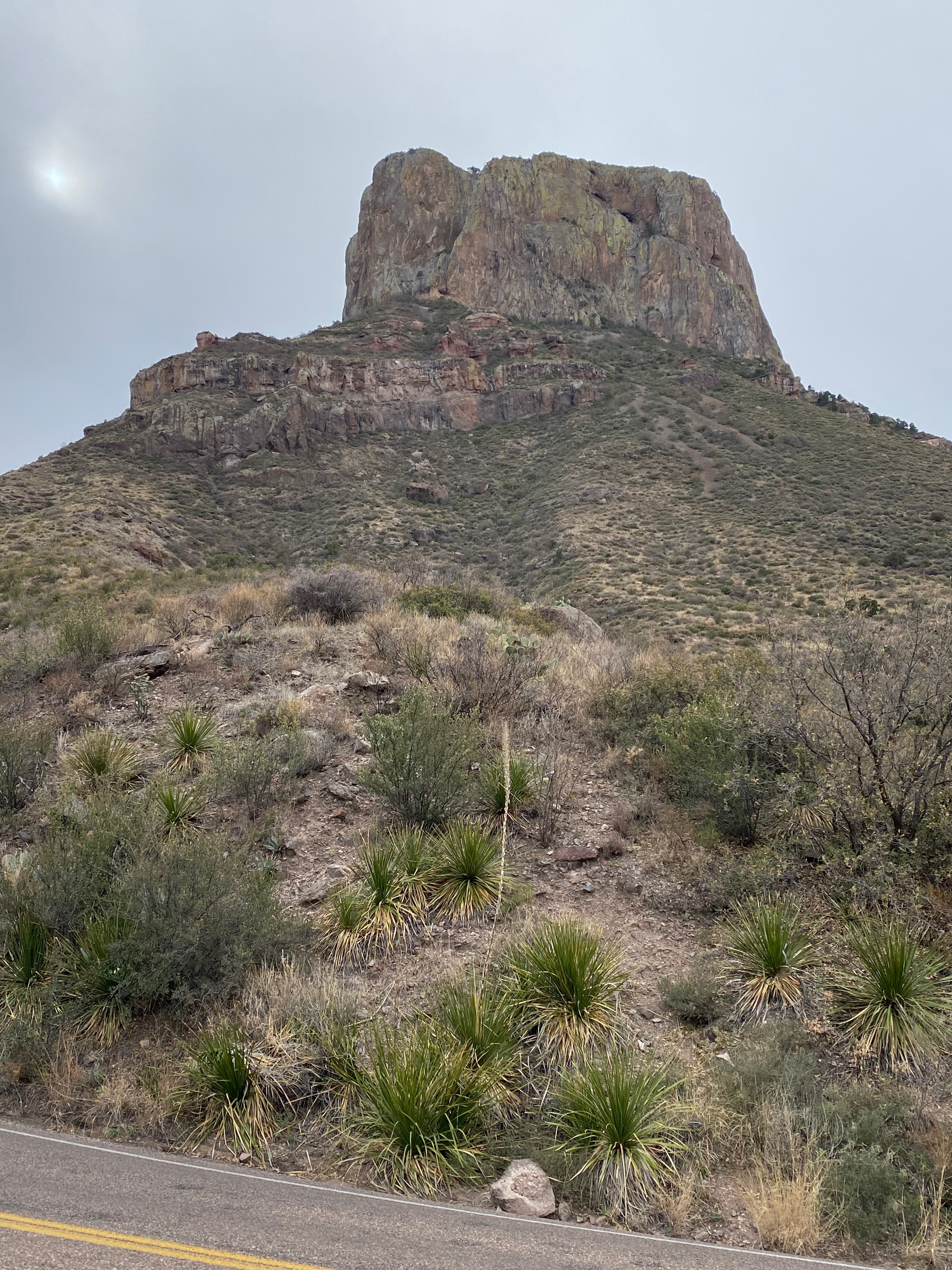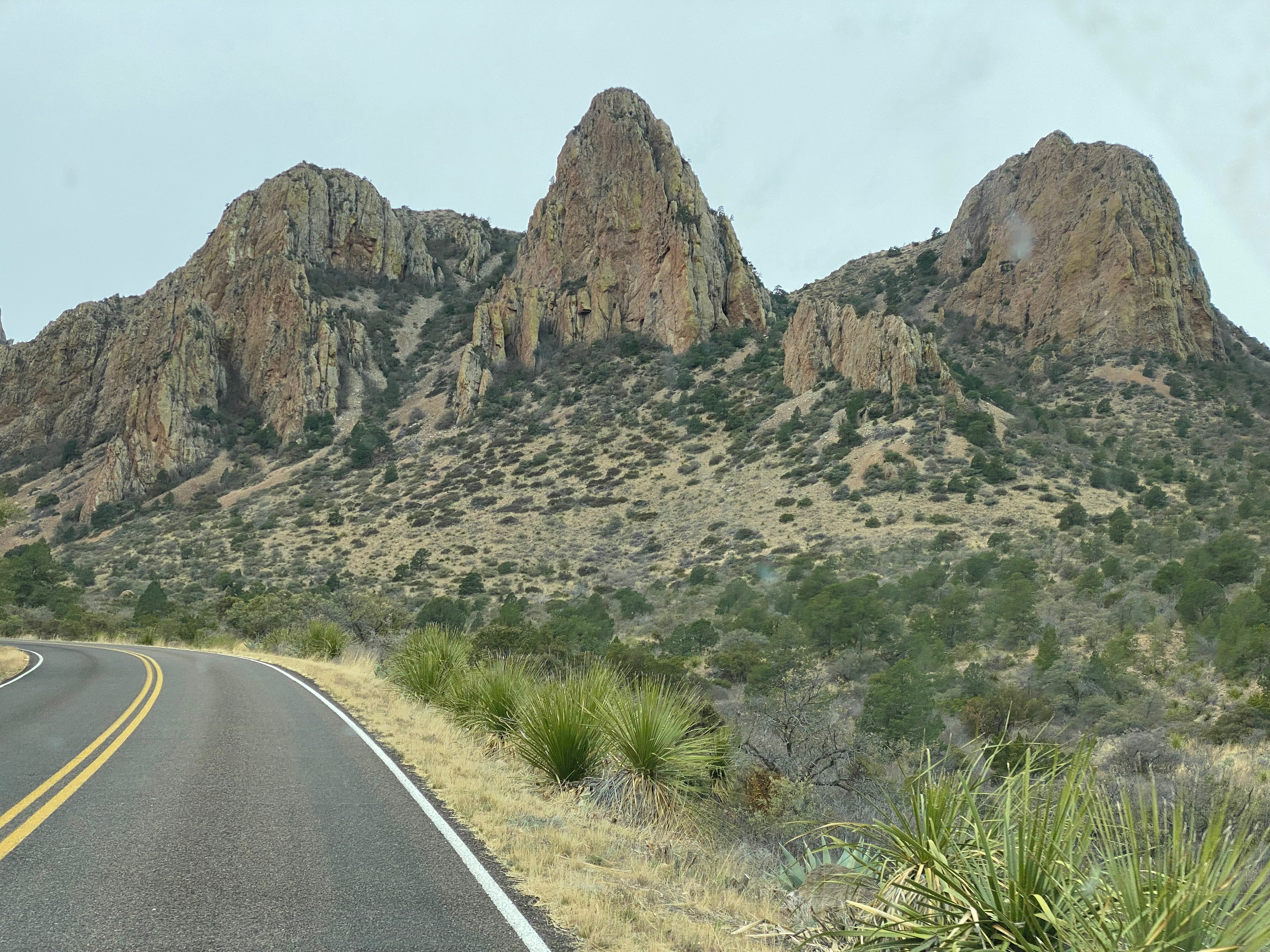 Next day, we visited Chisos Basin. It is literally a basin, surrounded by mountains on every side. Exceedingly beautiful and oh-so busy with staff guiding/directing traffic, only allowing a vehicle in for each vehicle going out. When we got back to the intersection, there were police vehicles doing the same.