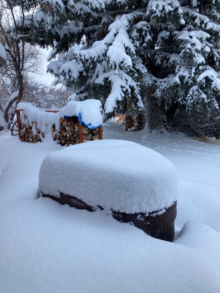 In Lander, WY, the snow started on Thursday, Thanksgiving Day. We left before that, Thankfully!! (Marley is a bit sad as he loves the cold and snow!)