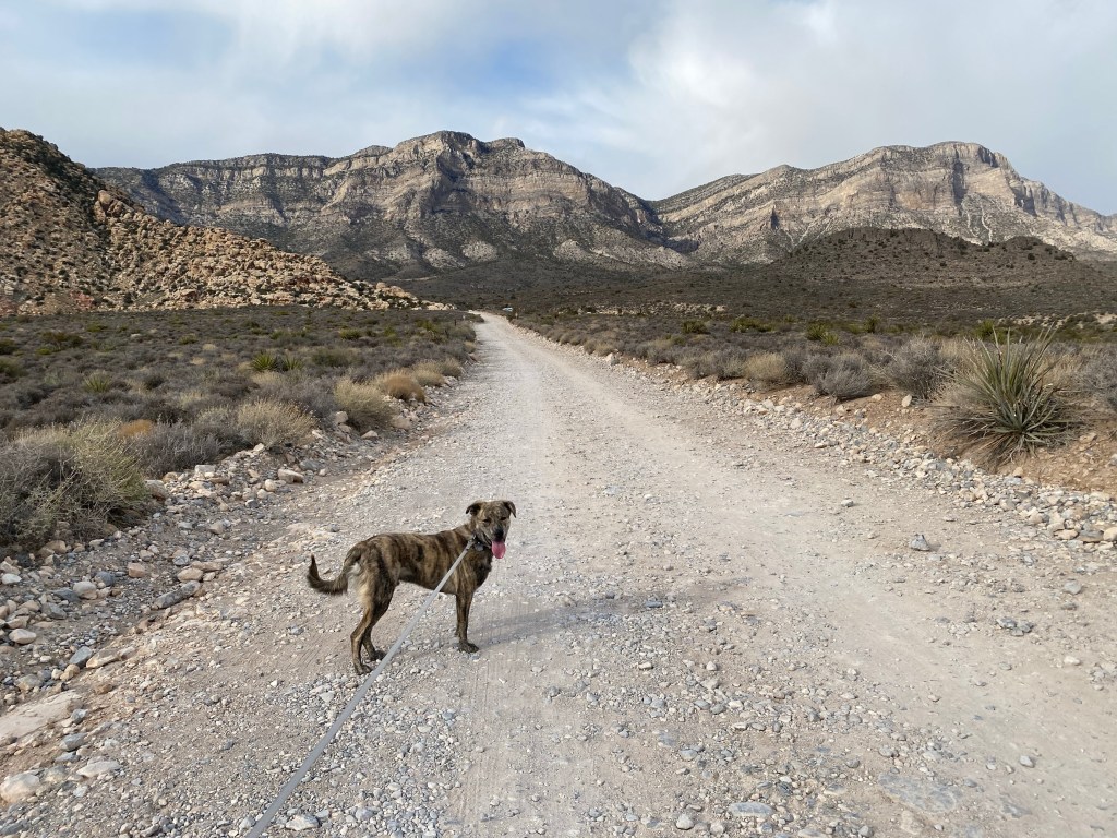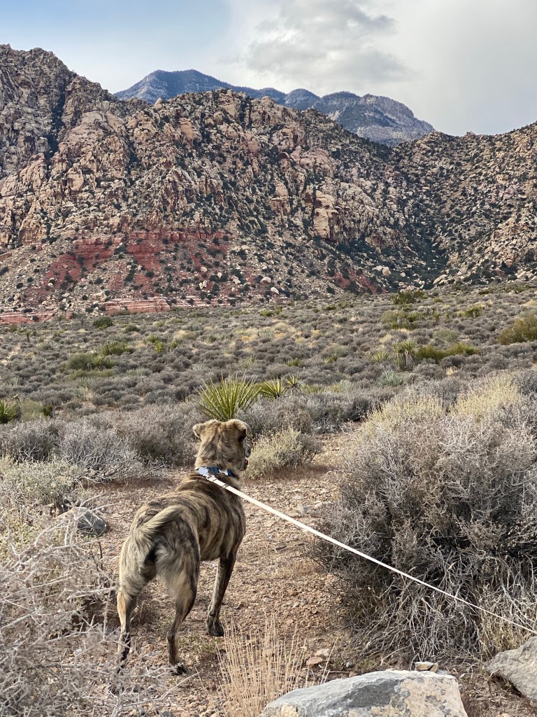 And last (but not least in terms of action) was a visit to the Las Vegas Art District! As we drove to Las Vegas to see if we could find “The District”, there was unusually heavy traffic. We heard a lot of sirens and saw all kinds of emergency vehicles as we neared the Art District. We didn’t give it too much notice. After all, it was Vegas, and near “the strip”. Parked and went exploring. We both found it a bit of a disappointment. Marley, on the other hand, loved it. He got to interact with his many admirers and even met a fellow brindle he was desperate to play with.