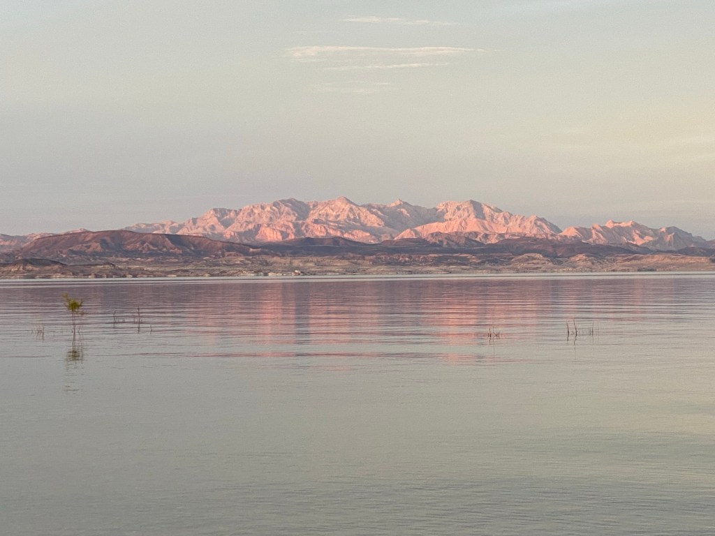Day 25 of our stay here at Lake Mead. And there she sits….our sweet old truck, still waiting for parts. As a result, here WE sit!