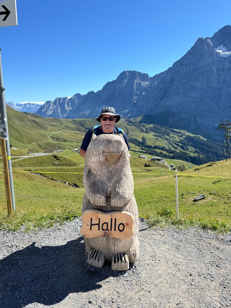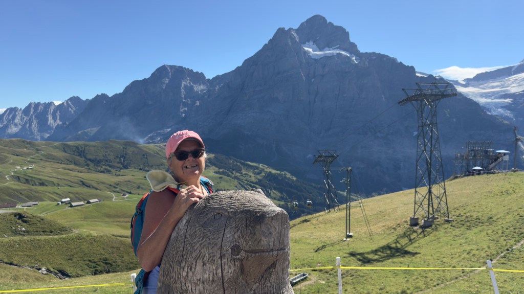 Still experiencing jet-lag, we didn’t get started until 11 am-ish. We had planned beforehand that this would be our starting point, so off we went. This whole region of the alps is known as “The Jungfrau” region. We had purchased tickets to the Jungfrau region online, before leaving. These allowed us unlimited travel on any and all modes of travel….trains, buses, gondolas etc etc. for the three full days we’d be here. Are we ever happy we did-they have made things so much easier. All we have to do is show the QR code on our phone and the gates open. No waiting in lines to purchase tickets.