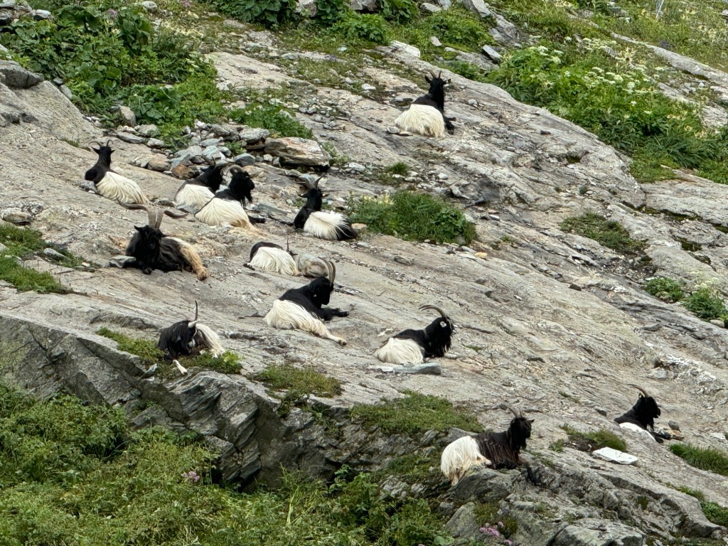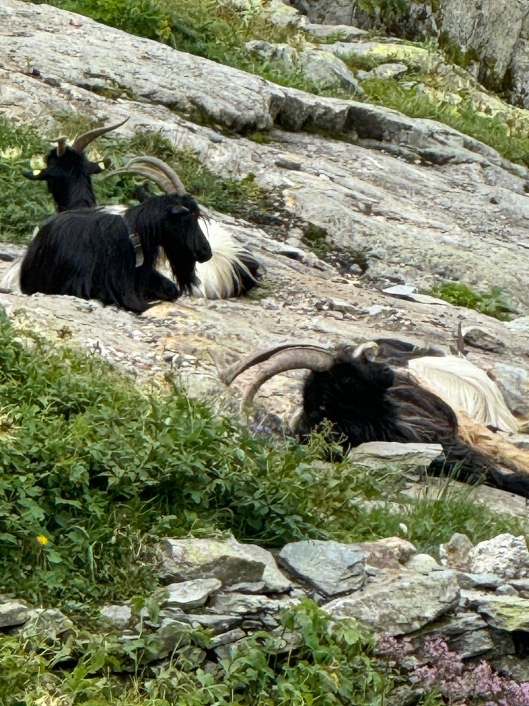 When we arrived, 2 of the dogs were out for exercise. The goats were foraging.