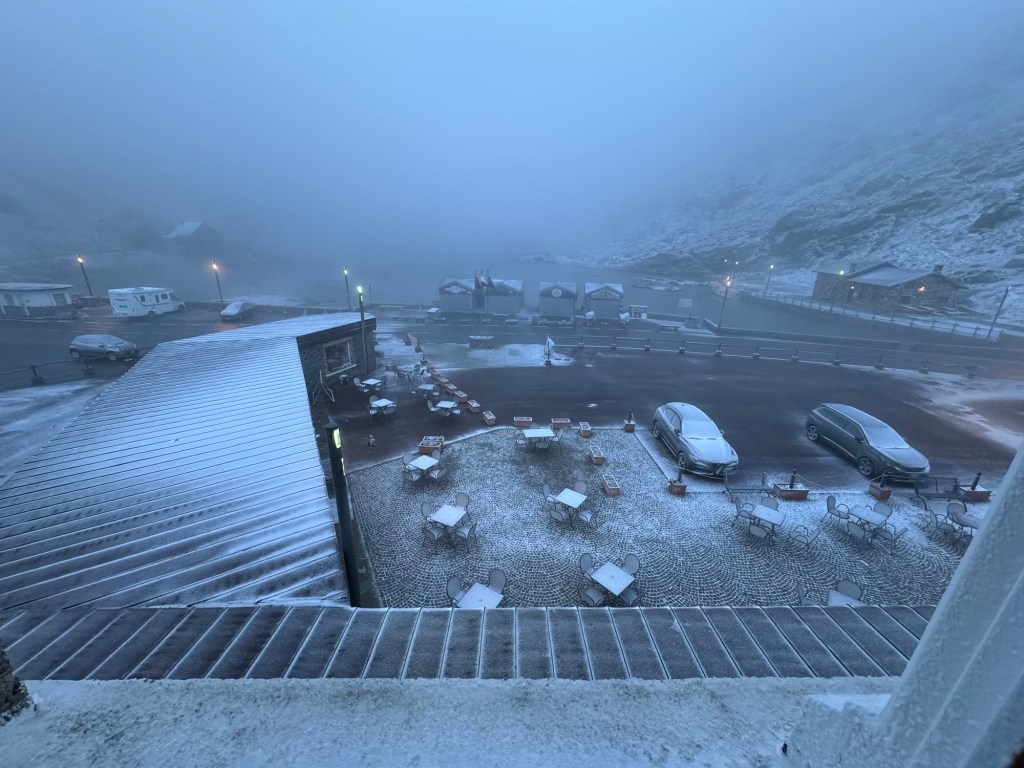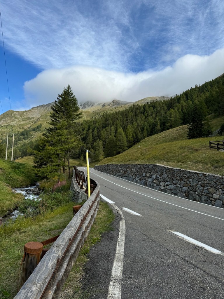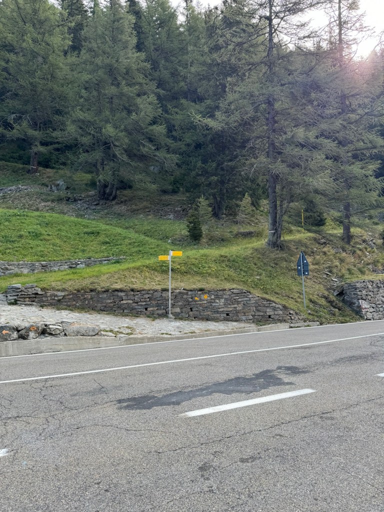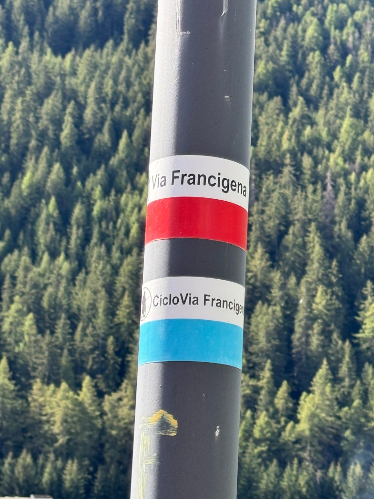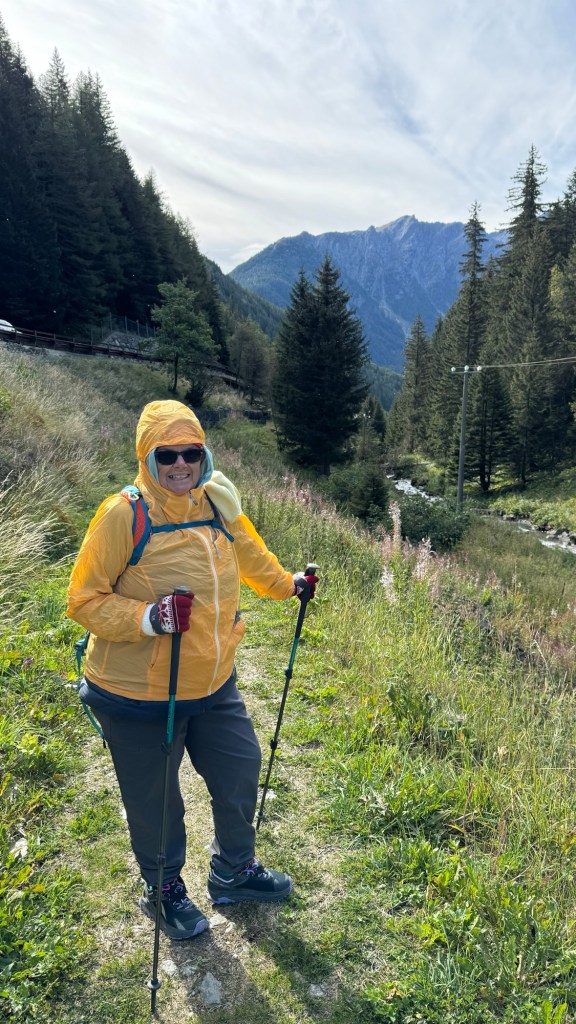 Yes! As predicted, it snowed overnight. Not only was it cold and snowing, there was also a very strong wind. What to do? Wait for it to ease and hopefully melt a bit or take a ride a few kilometers down the road to where there was no snow? Mike went to check the trail, slipped and almost fell. It was quite icy and difficult to see under the snow. The terrain was treacherous. Decision made! We accepted a ride to just before St. Rhemy. From snow to no-snow in just a few kilometers.