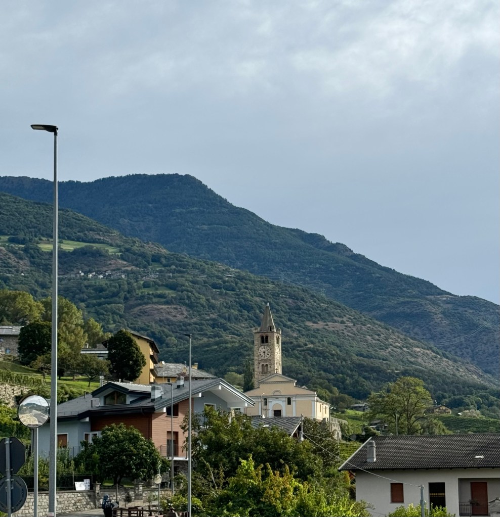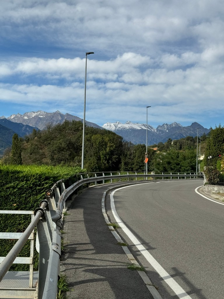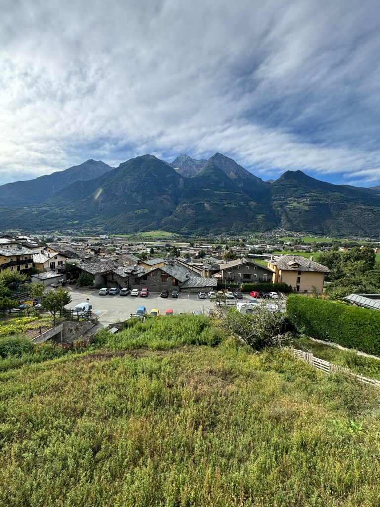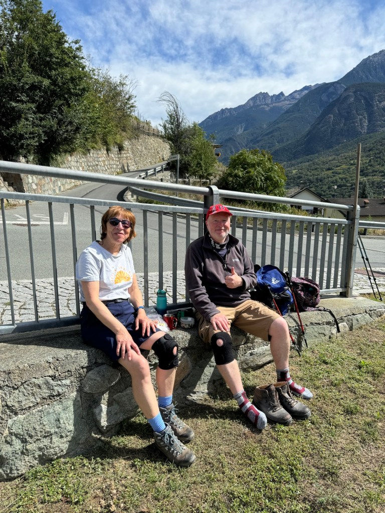 14 km, great walking weather…cool with sun and clouds…a bit windy. Got underway at 9. Most of the walk was along the valley sides, quite high up. Here are a few views as we walked out of Aosta.