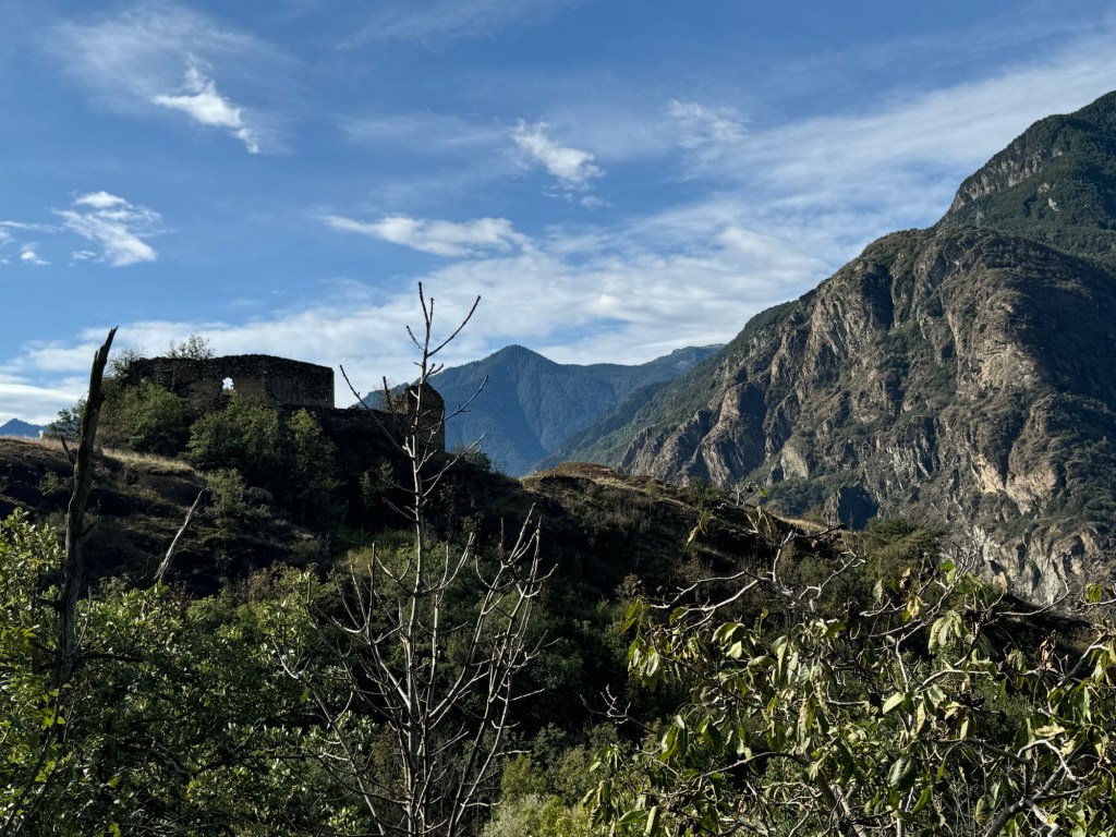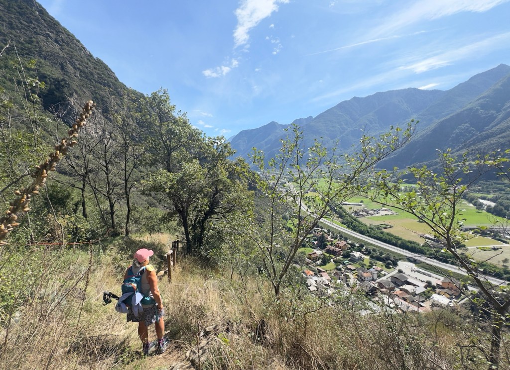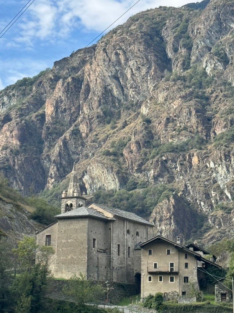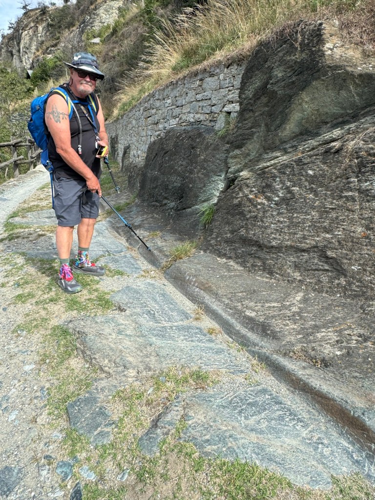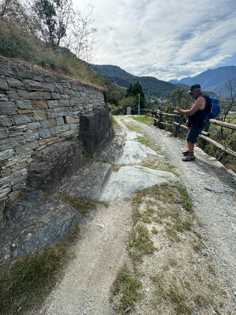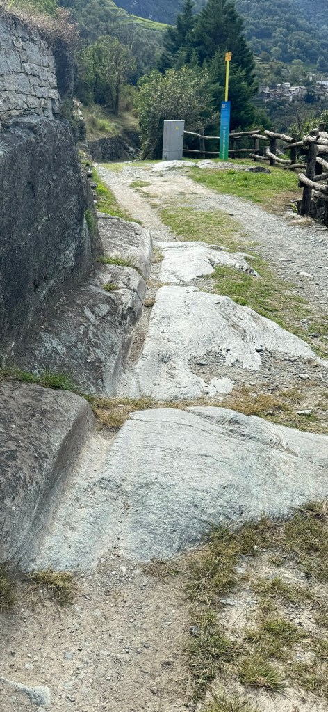We are walking down the Aosta Valley, always along the hillside on the south side of the valley. The whole time, we’ve had steep ups and downs but dropping the whole time. Today, we had such lovely pathways BUT also many very challenging, sections where we had to proceed very slowly and deliberately.