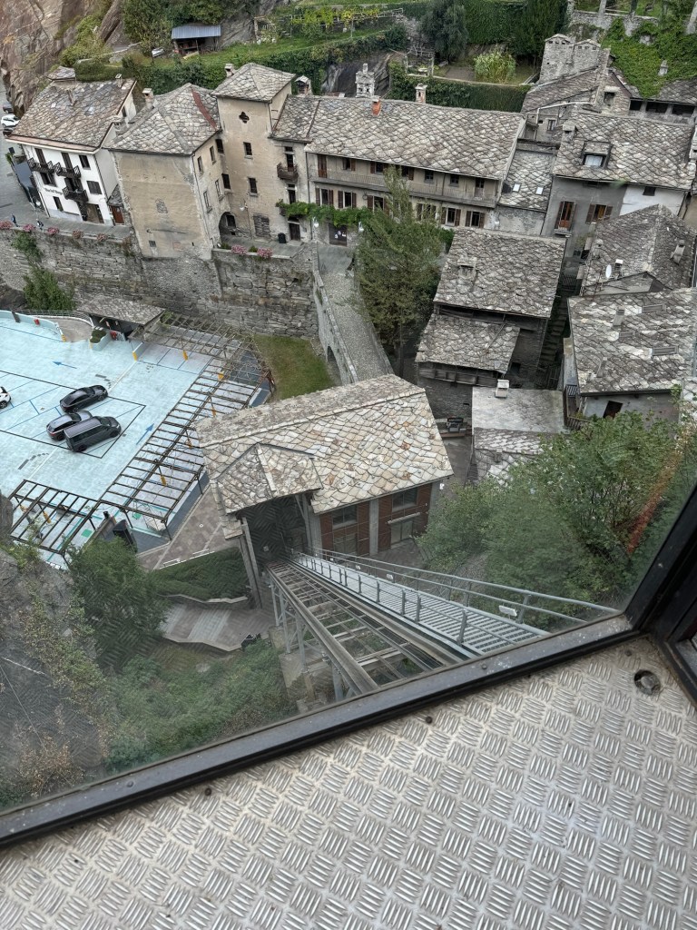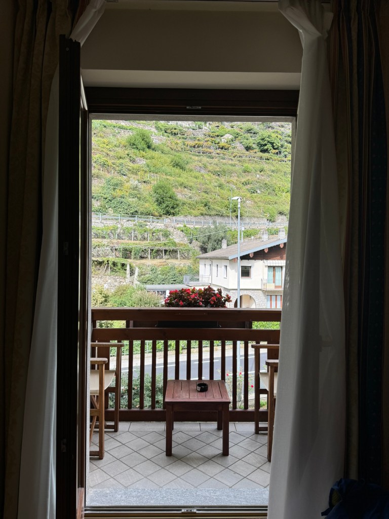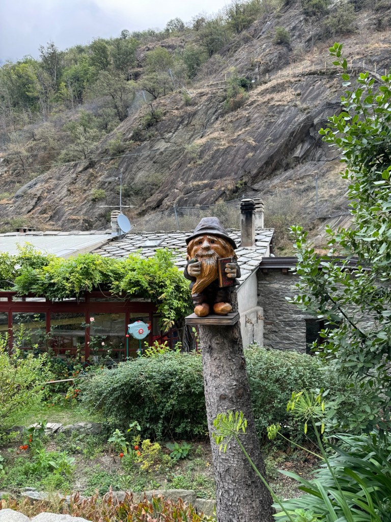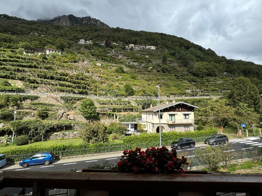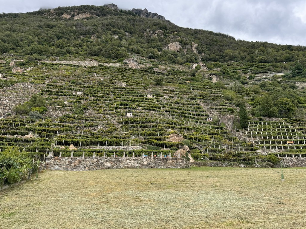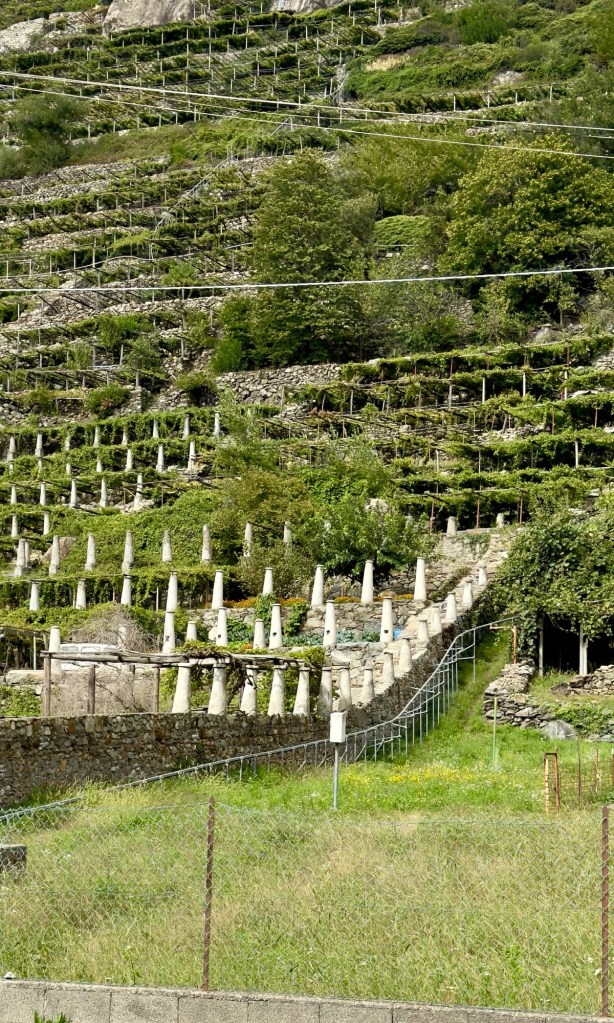 And the last delight…walking into the village and seeing the vineyards perched on the hillsides. Interesting fact: the concrete cones you see in the vineyards, are called “topies.” They function to store heat during the day which they release during the cold Alpine nights to keep the grapes warm.