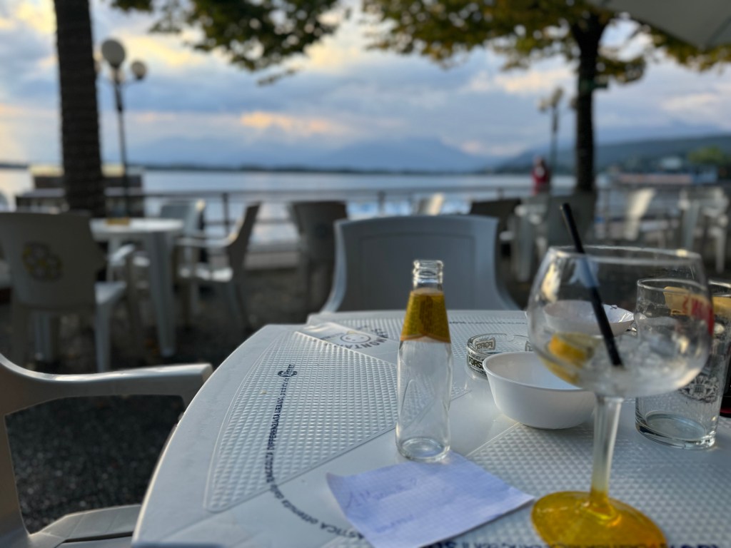We headed out for a drink. There was a boardwalk all along the lake with a never-ending array of eateries and drinking places…entertainment for the kids etc etc. It’s probably a happening place on weekends but on this evening, it was quiet.